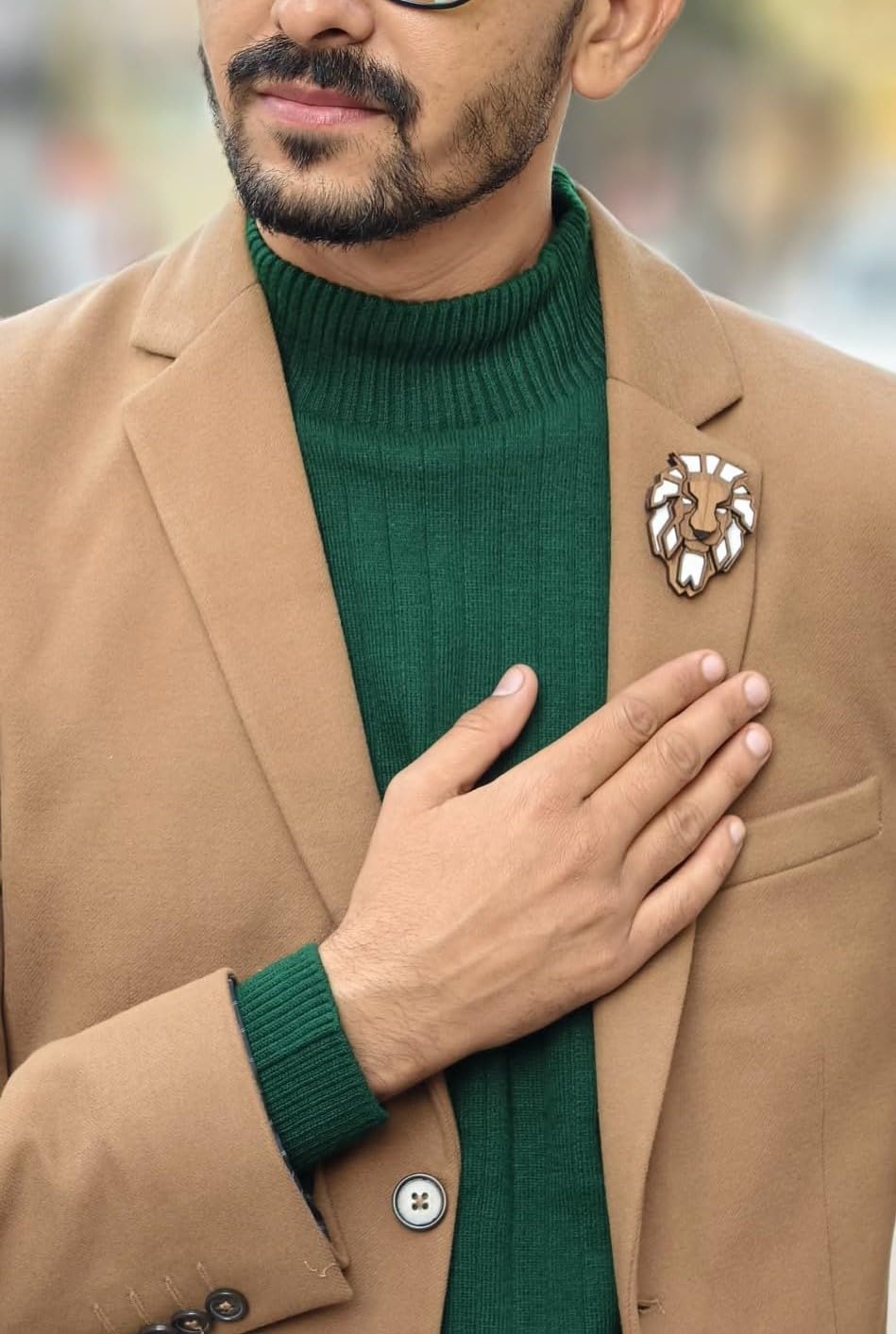 Acrylic Lion Wooden Brooch For Men