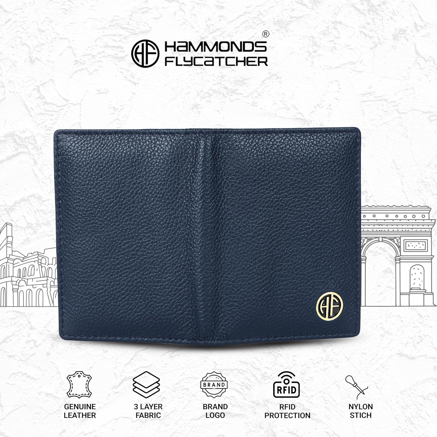 HAMMONDS FLYCATCHER Genuine Leather Card Holder Wallet for Man & Women, RFID Protected ATM/Credit Card Holder Wallet for Men with 6 Slots, Gift for Men, Father, Husband, Boyfriend – Blue