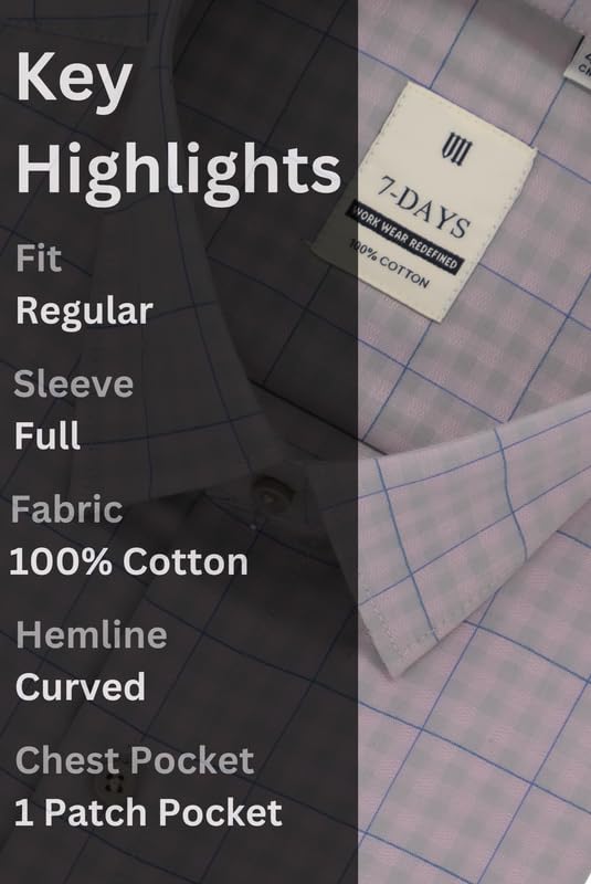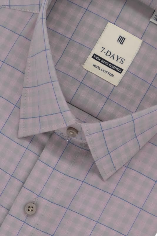 7-DAYS Men’s Checkered Formal Shirt – 100% Pure Cotton, Regular Fit, Full Sleeve | Gents Check Shirt for Semi – Formals and Business Casual