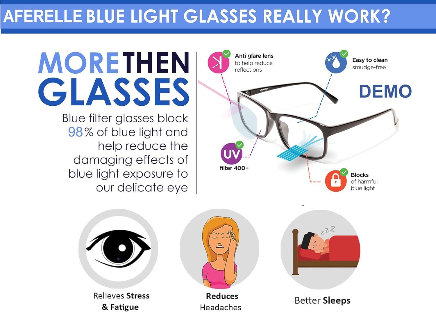 Aferelle ® Unisex Blue Ray Cut Lens |Zero Power | UV420 with Anti-reflection | CR Lens TR90 Frame | Size Medium