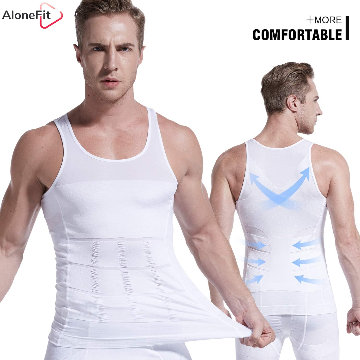Alone Fit Men White Compression Shirt Body Shaper Vest Tummy Control Shapewear Abdomen Undershirt Gym Workout Tank Top – XL