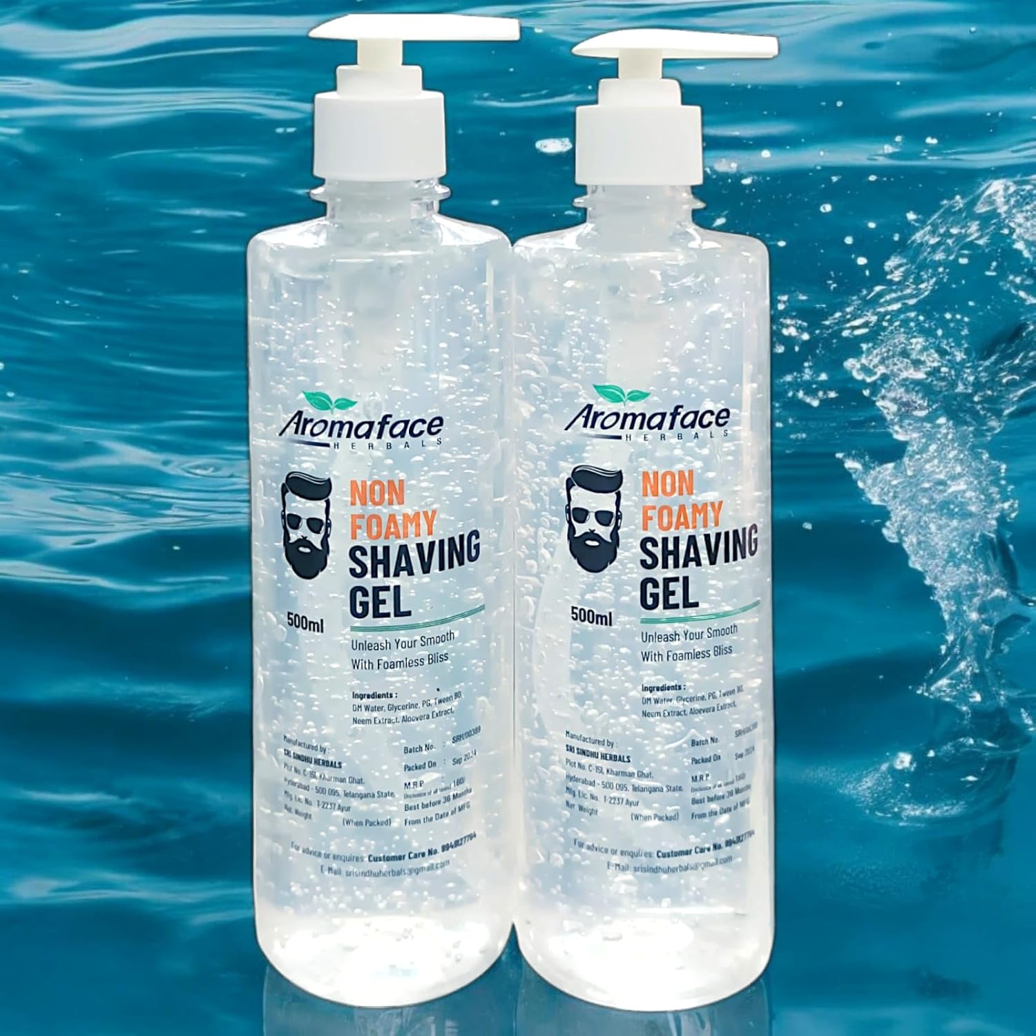 AROMAFACE Hydrating n Nourishing Non Foaming Shaving Gel for Men With Aloe Vera n Glycerin, Transparent Shave Gel For Maximum Visibility n Smooth Beard Shaving, Vegan n Paraben Free 500ml x2