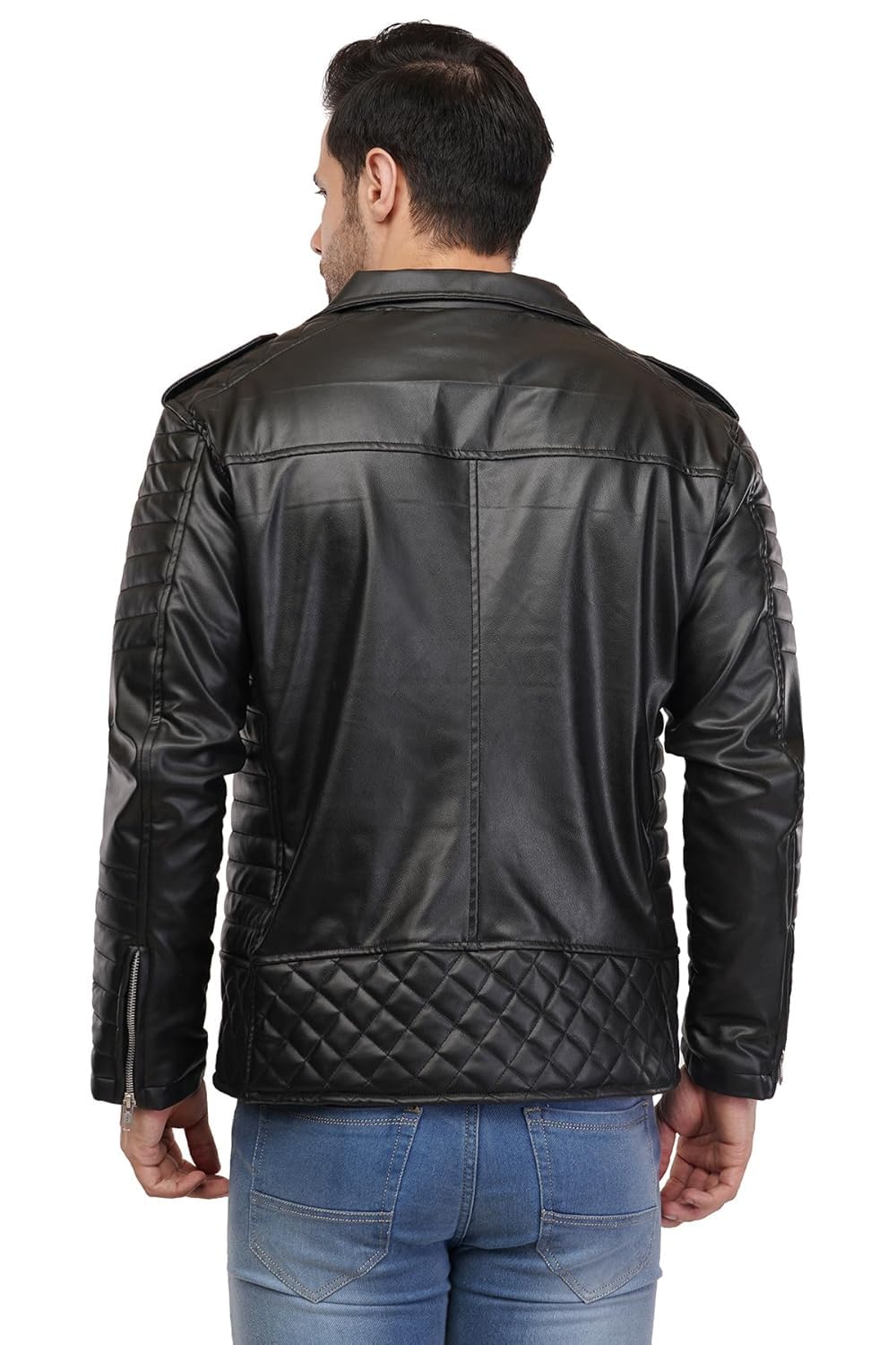 ASKSTAR Men’s Black Leather Biker Jacket with Zipper Pockets, Faux Leather Jacket – Premium Biker Jacket with Stylish ziper Accents (IN, Alpha, 2XL, Regular, BLACK)