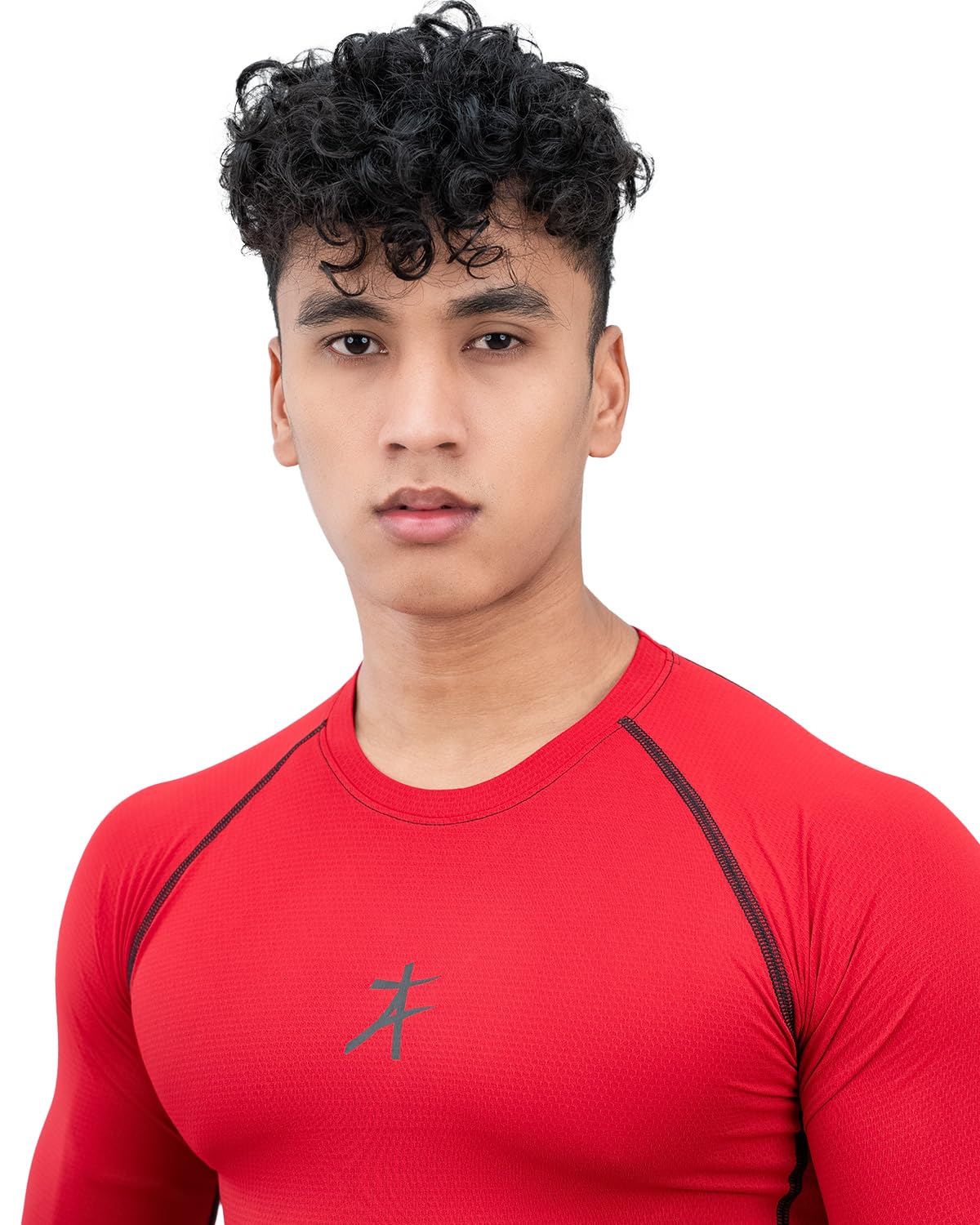Athflex Men’s Muscle Fit Full Sleeve Textured Compression T-Shirt – Quick Dry, Web Textured Fabric,Superhero Look,Stretchable Sportswear for Workouts & Fitness