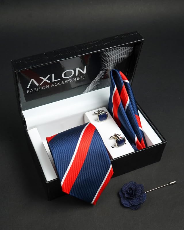 Looking for the Best Tie Set? Tired of trying to coordinate your tie with your pocket square, cufflinks, and tie clip? Say goodbye to the hassle and hello to convenience with our necktie sets! Our tie sets provide a complete solution for your accessorizing needs, offering a coordinated look that is both stylish and versatile. With our matching accessories, you can create a polished and put-together look for any occasion. How? SUPERIOR QUALITY MATERIAL- Our luxurious woven microfibre ties are the perfect way to upgrade your look! Crafted with exquisite attention to detail, each tie is made with beautiful stitching and thread, soft and rich in colour. And with high quality control standards, you can trust that these ties will last through any occasion. Upgrade your wardrobe today with our luxury ties! PERFECT GIFT – Our tie sets are the perfect combination of sophistication and style. Crafted by international designers, these timeless ties feature a subtle and simple pattern that can be dressed up or down for any occasion. Whether you’re headed to a nice dinner or just to the office, our tie sets will keep you looking sharp without sacrificing comfort. Get the best of both worlds with our high-quality, stylish ties today! VALUE FOR MONEY – Our necktie set pack offers the perfect combination of 3 accessories, including pocket squares, tie and tie clip pin. And unlike other brands, our set comes with matching pieces that will help you create a cohesive look. So if you’re looking for an affordable and stylish way to dress up your look, our necktie set pack is the perfect choice! SATISFACTION GURANTEE – Look no further than Axlon Brand! We are committed to providing you with the ultimate positive buying experience. If you’re ever unsatisfied with our product return it & we will make it right. Shop our tie sets today and experience the ease and convenience of a complete solution. Get yours now before they’re gone!