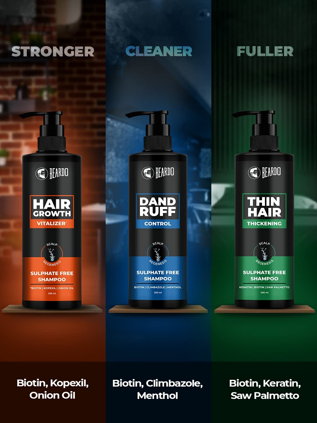 MADE SPECIALLY FOR MEN’S HAIR: Men’s scalp is different from women. It produces more sweat, more susceptible to hair loss and more prone to dandruff. For this reason Beardo has introduced a range of Sulphate Free Shampoos For Men that targets specific scalp related problems in men