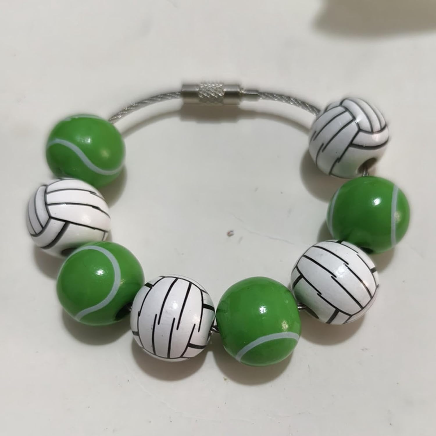 Cartoon DesignAdd a touch of sporty charm to your with our adorable ball pendant! This accessory features eight wooden beads adorned with charming football patterns, strung on a sturdy stainless steel cable, adding a playful feel to your bag handle.
