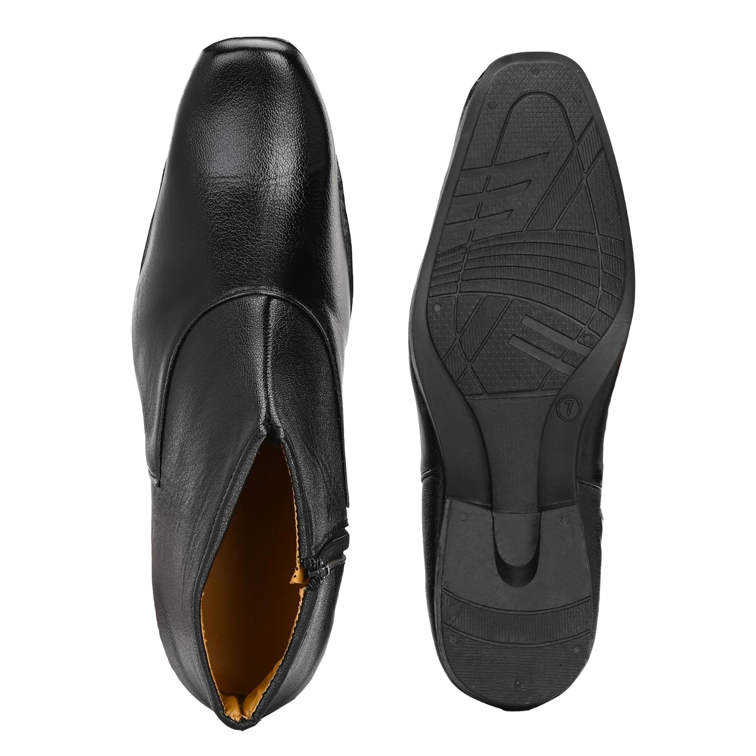 Shoe Island Chelsea-X Black Leatherette Stylish Zipper High Ankle Length Party Wear Casual Chelsea Boots For Men. class. Perfection. re-live. Flaunt a minimalistic and stylish statement as you adorn this new bad-ass pair of boots, hand-crafted for those who loves to live their life on the edge, by Shoe Island. Featuring a synthetic upper material that ensure comfort and breathability. Thick airmix sole of these shoes provide durability and a good grip. Club these pair of casuals with your outfit to add a refined finish to your overall look for the day. We want you to wear it for the same reason we want to wear it, ‘we love it’. #ShoeIsland