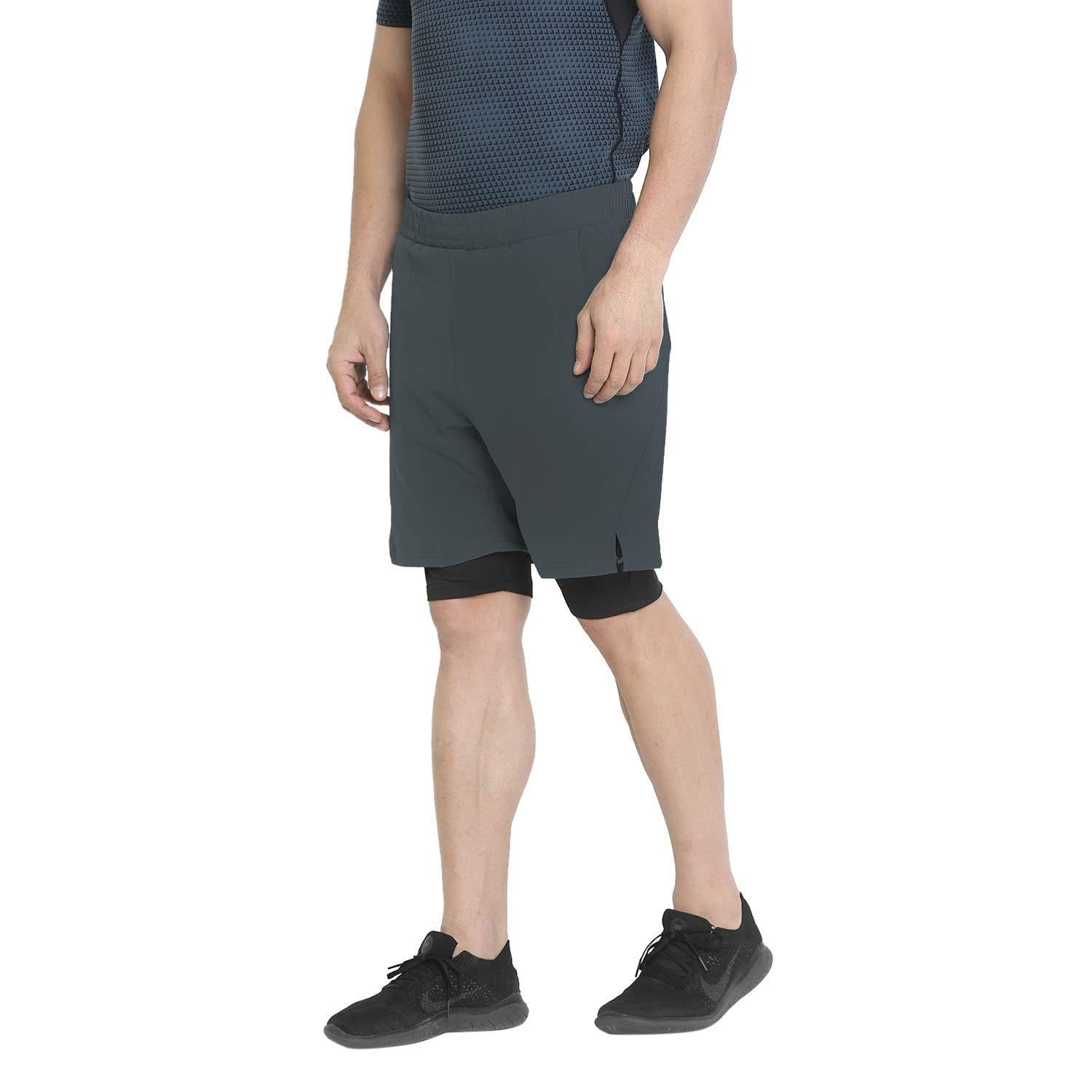 CHKOKKO Men Running Sports Double Layered Shorts with Phone Pocket
