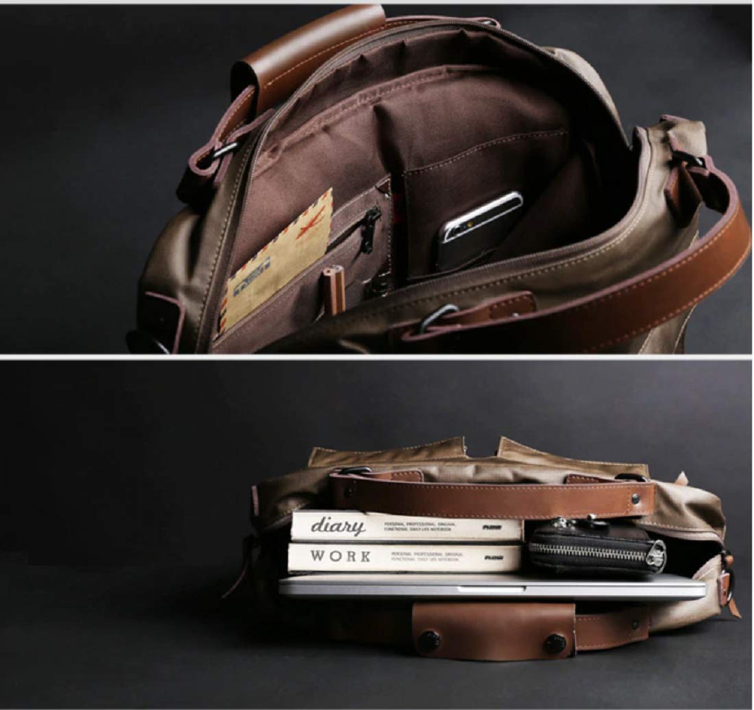 Contacts Canvas Splash-Proof Laptop Messenger Bag For Up To 15.6″ Laptop/Mac With Genuine Leather Trim, Laptop Sleeve Sling Bag With Shoulder Strap (Beige New, Unisex-Adult)…