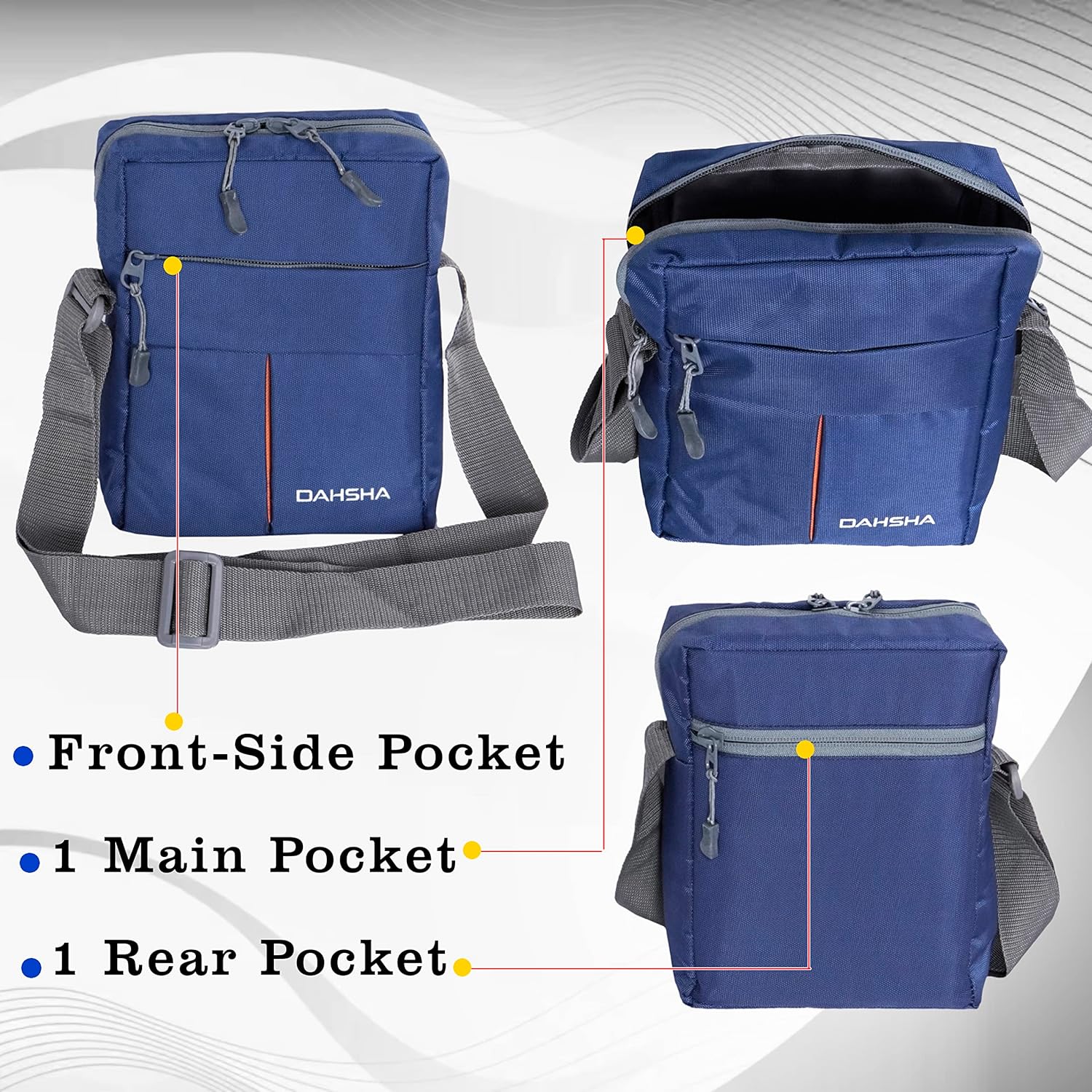 DAHSHA Nylon Padded, Small Sling Cross Travel Messenger Bag, With Multi Pocket Zip Closure, Trendy, Stylish bag for Men and Women (Blue – 21.5 X 6.5 x 16 Cm)