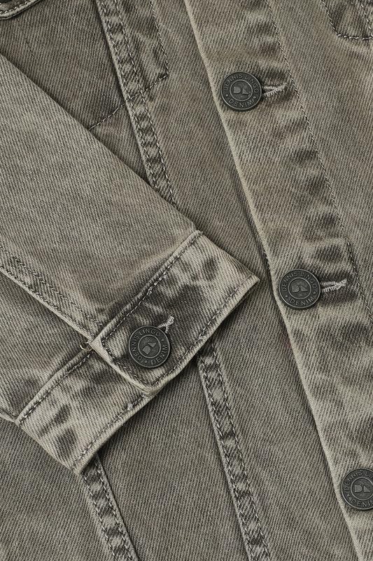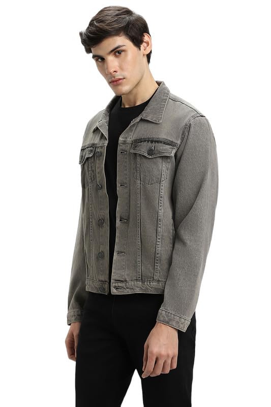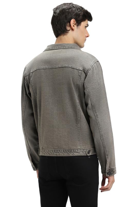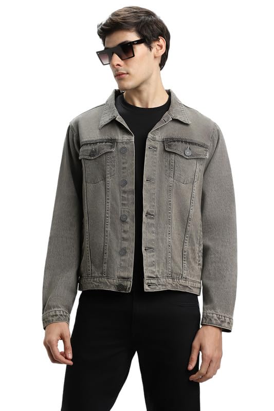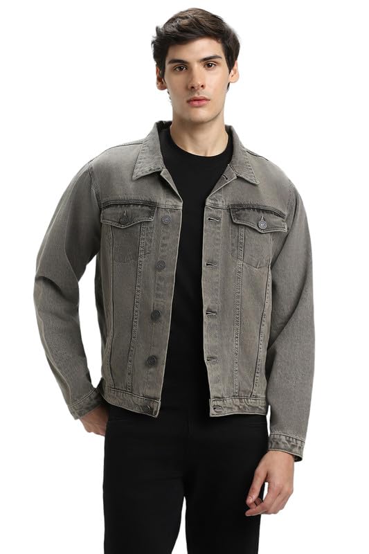 DENNIS LINGO Men’s Grey Washed Cotton Denim Jacket, Regular Fit Full Sleeves Regular Collar