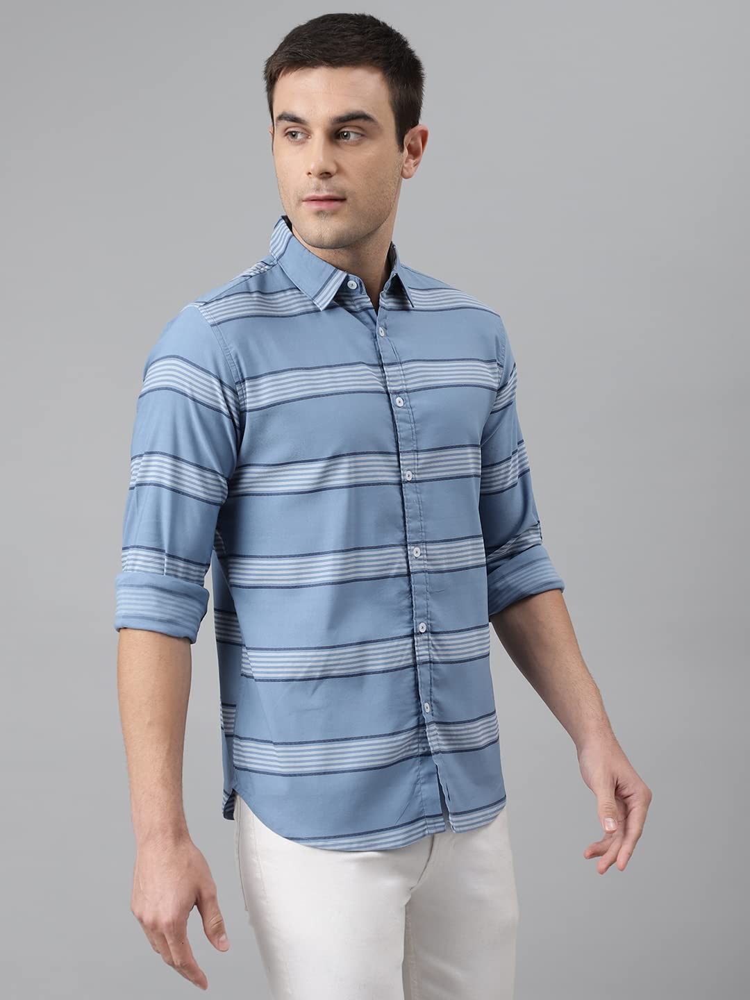 Dennis Lingo Men’s Stripes Slim Fit Cotton Casual Shirt