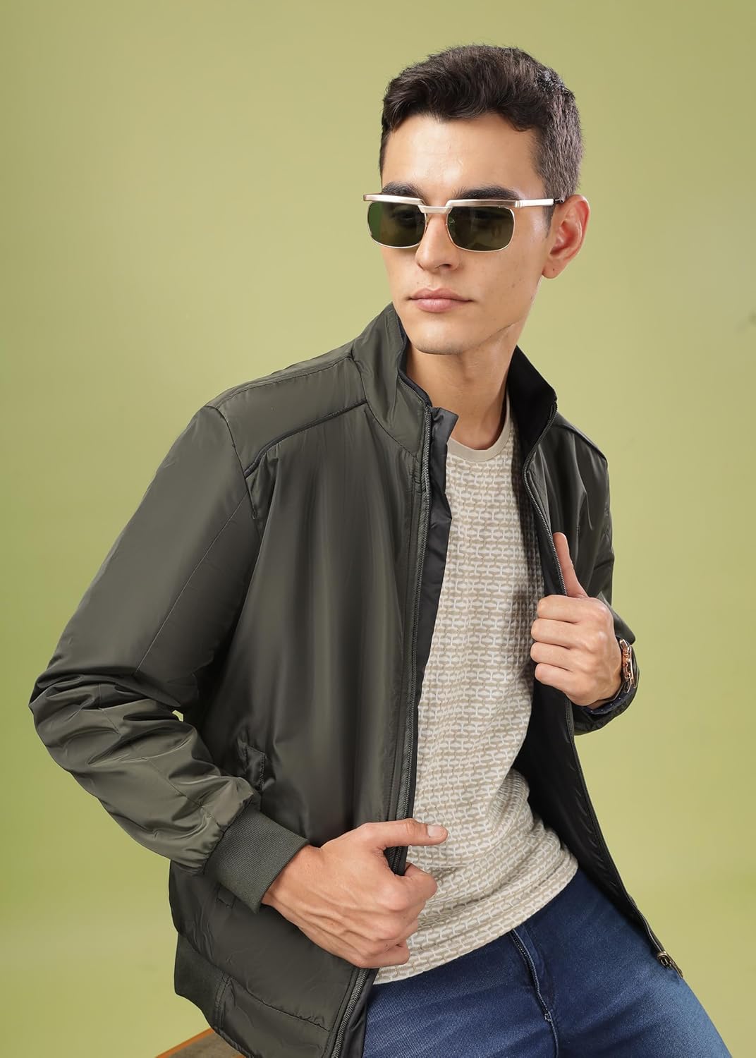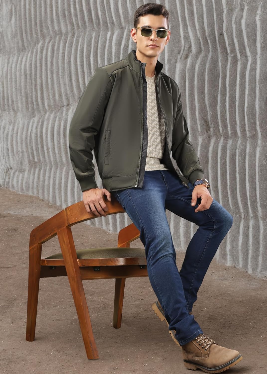5). Embrace a fashion-forward approach with the Dollar Casual Solid Bomber Jacket for Men. Whether you’re strolling through the city streets or attending a social gathering, this jacket will exude confidence and charisma, making you the center of attention.Introducing the Dollar Casual Solid Bomber Jacket for Men, a perfect fusion of style and comfort that will elevate your fashion game to new heights. This classic bomber jacket is a must-have addition to any modern man’s wardrobe.