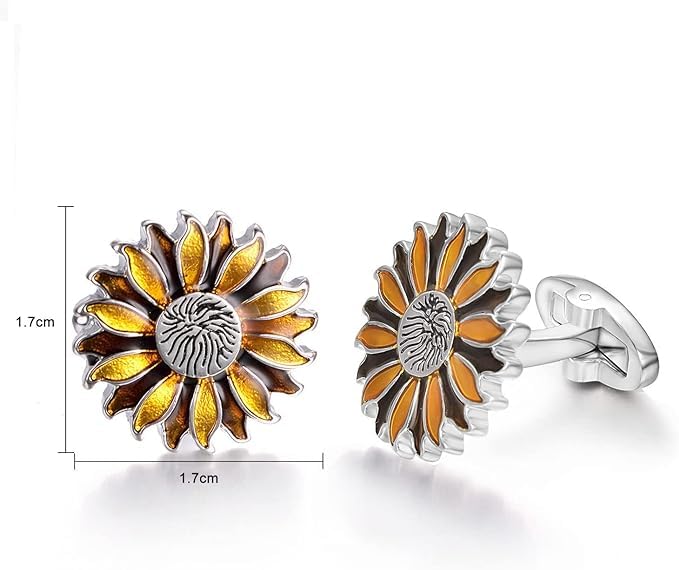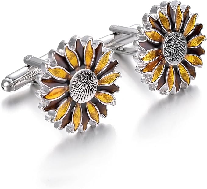 El Regalo Vintage Yellow Sunflower Cufflinks for Men- Flower Cufflinks Novelty Gift for Mens-Cufflinks Fashion Jewelry