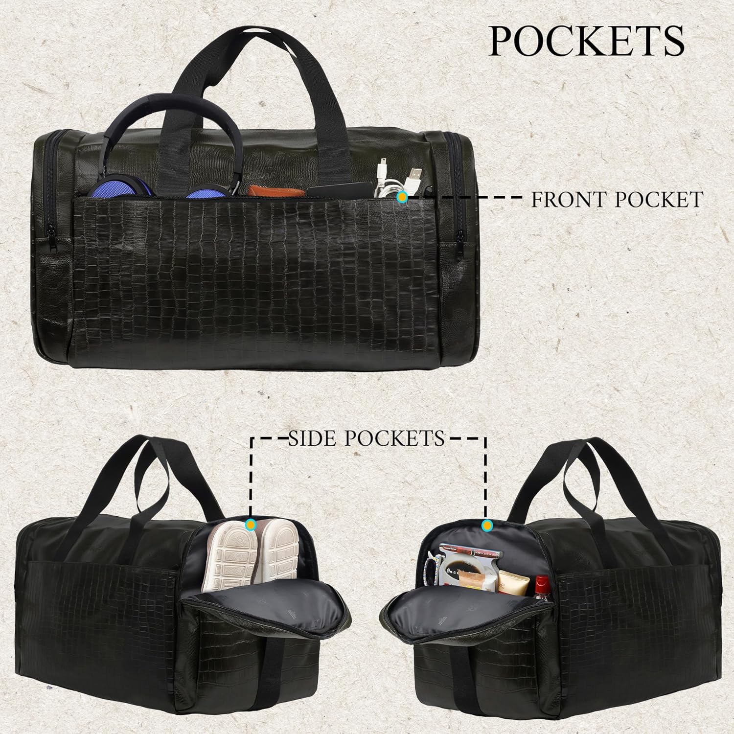 F Gear Cooper 41L Duffle Bag Faux Leather Bag | 1 Main Compartment| 3 Pkts| Shoe Pkt| Padded Botton| Hand Bag Travel Bag Weekender Lightweight Overnight Luggage Bag | Water Resistant | For Women & Men
