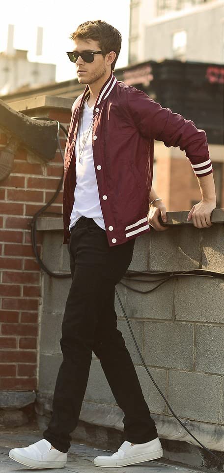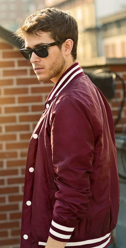 fabitto Varsity-Style Long Sleeve Bomber Jacket for Men (Full Maroon)