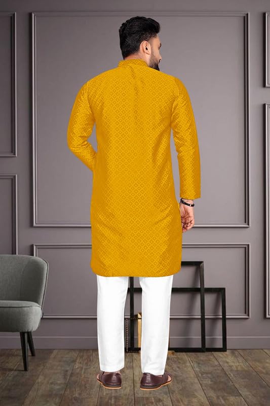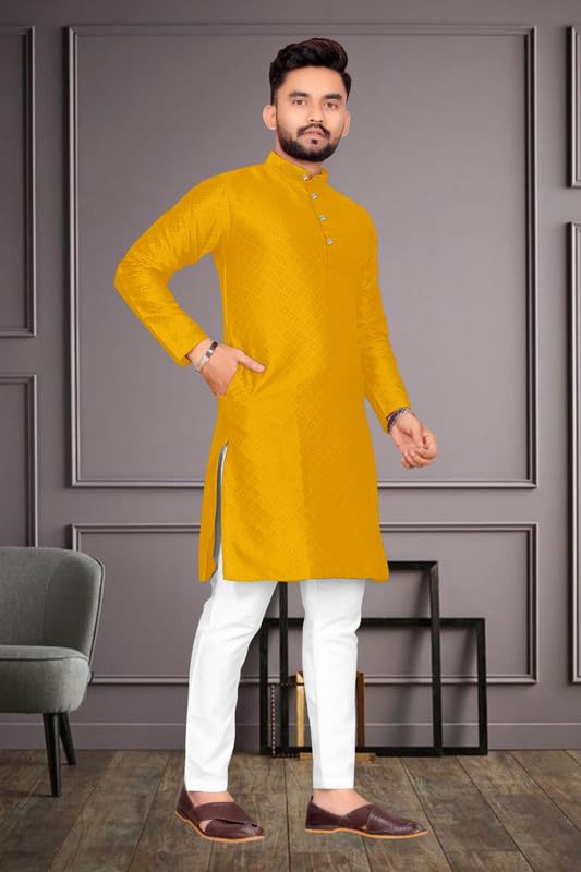 FABWAX Mens Self Design Cotton Silk Kurta Pyjama Set