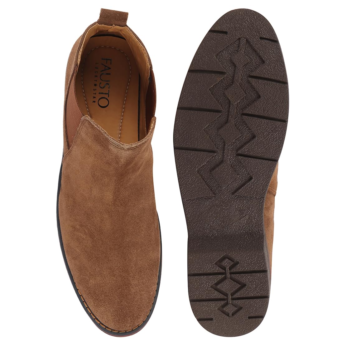 FAUSTO Men’s Suede Leather Slip On Chelsea Boots for Winter|Casual|Fashion|High Ankle|Biker|Outdoor Comfort with TPR Sole Flexiblity