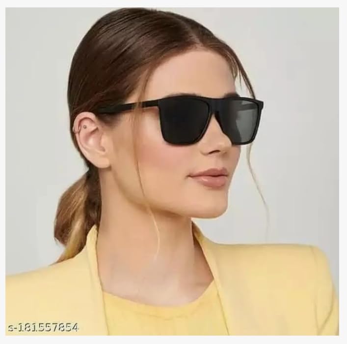 FORSEE Square sunglass with fiber frame, black glass Black frame sunglass | FOR MEN AND WOMEN | Standard (Free Size); Glasses are ideal for day vision