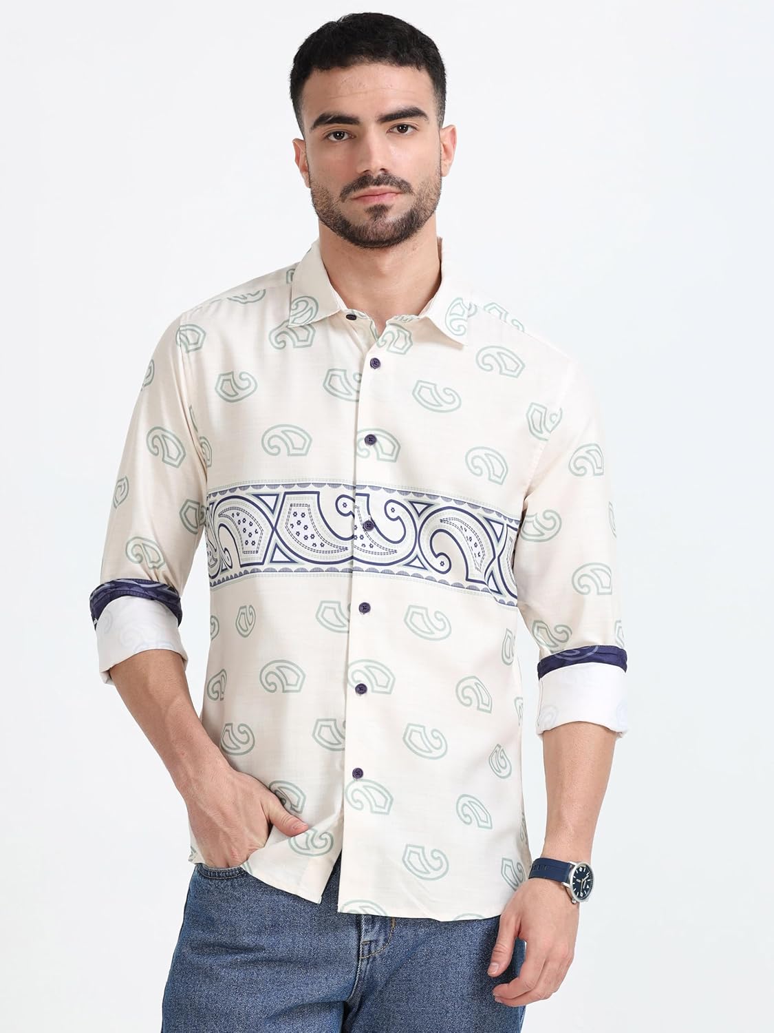 GLORYBOYZ Full Sleeve Printed Shirts for Men Regular Fit Stylish Men’s Casual Shirt Spread Collared Neck Fashionable Stylish Vacation Summer Office Casual Wear Shirts for Men