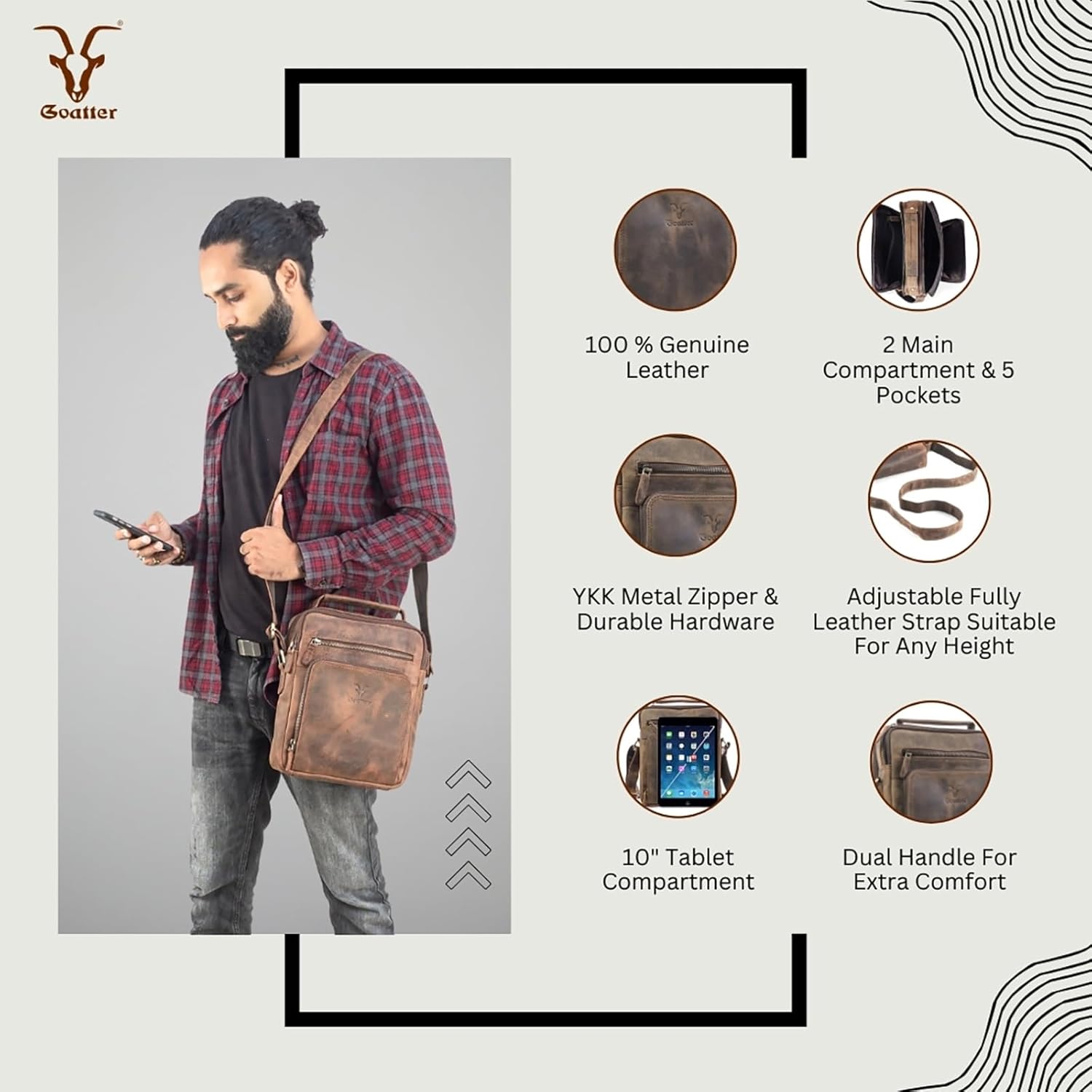 Goatter Men’s Genuine Leather 11.5″ Inch Messenger Bags,