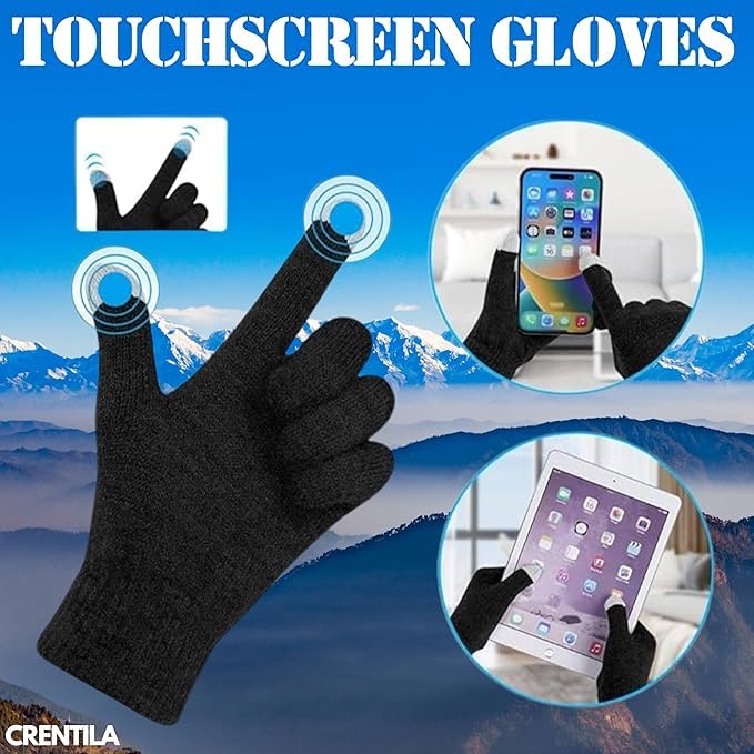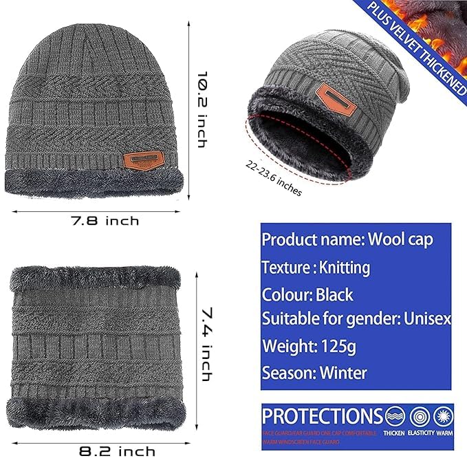 Good Friends Woolen Winter Cap for Men Women Woolen Beanie hat with Neck Muffler and Super Warm Touchscreen Gloves with Thick Fleece Lined Elastic Free Size Winters Wear for Snowboarding & Travel