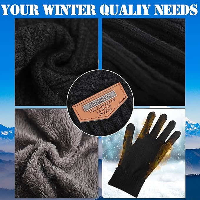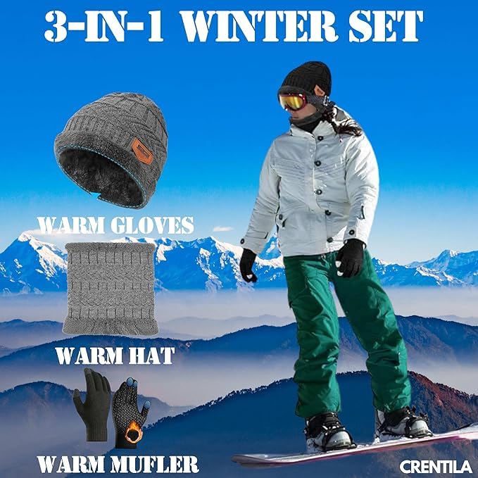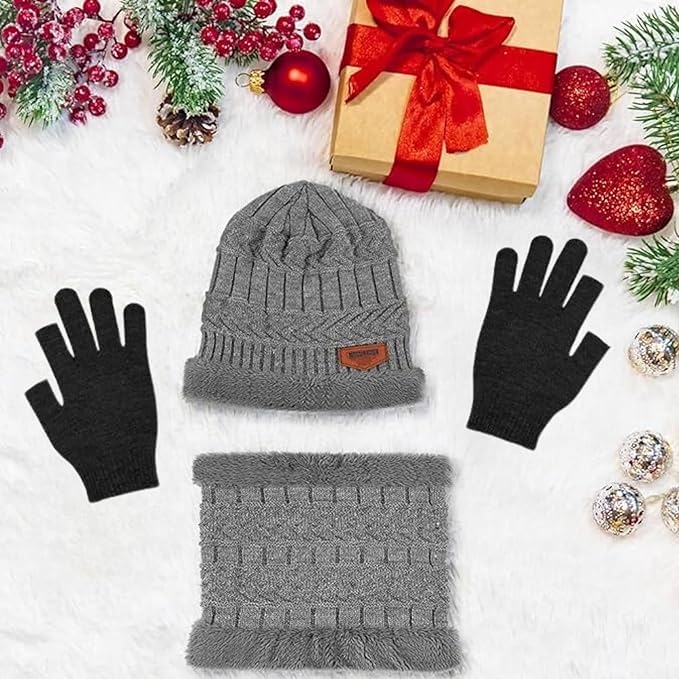 Good Friends Woolen Winter Cap for Men Women Woolen Beanie hat with Neck Muffler and Super Warm Touchscreen Gloves with Thick Fleece Lined Elastic Free Size Winters Wear for Snowboarding & Travel