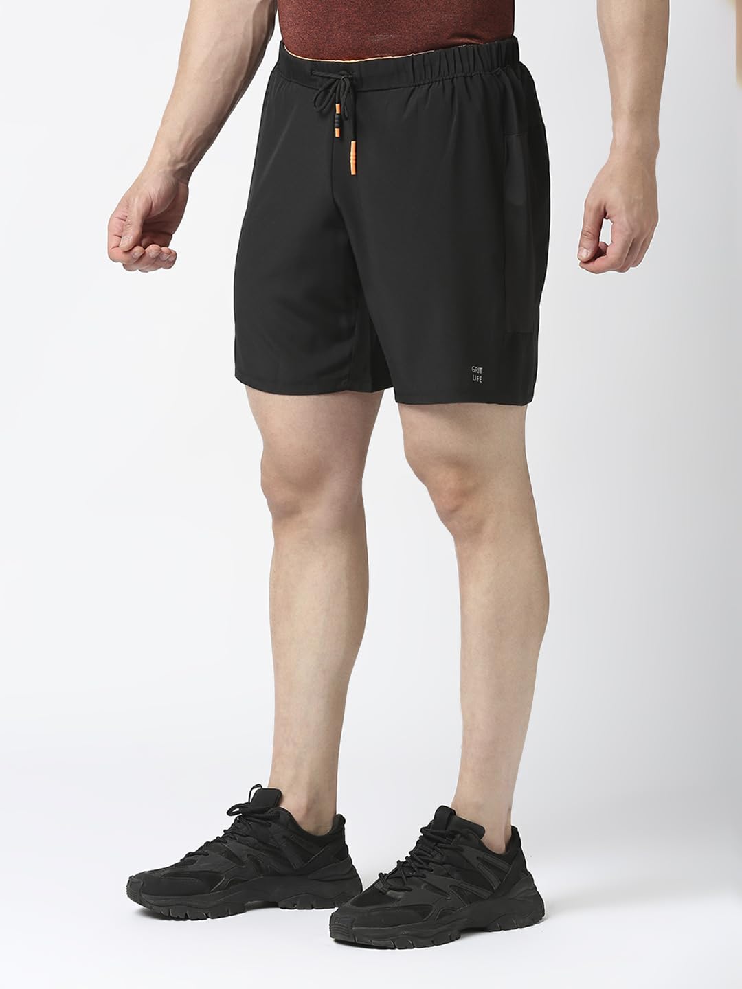 GRIT LIFE Men’s Sports Shorts Regular-Fit Polyester Solid Pattern with Drawstring Closure, Length Above Knee – MC Short