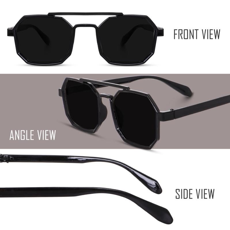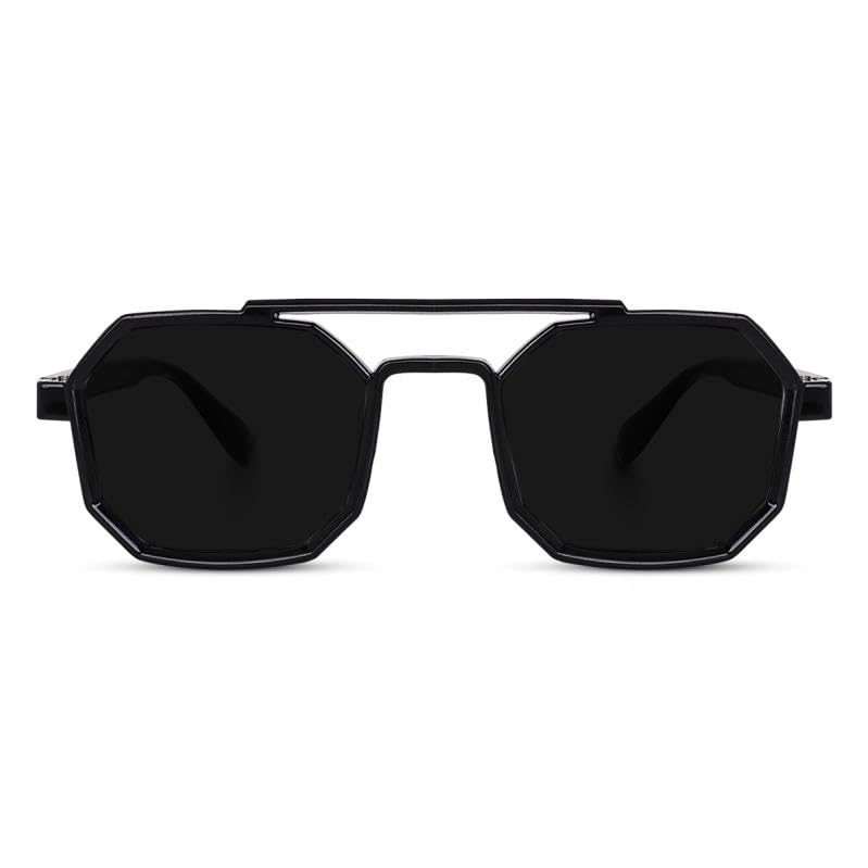 Unique Hexagonal Design: The standout feature of these sunglasses is their striking hexagonal shape. This geometric design adds an edgy and avant-garde touch to your look, making a bold statement wherever you go. The hexagon frame is carefully proportioned to flatter various face shapes, creating a harmonious balance between the angles and curves. Premium Quality Materials: Crafted from high materials, these sunglasses are built to last. The frame is made from durable black acetate, offering a lightweight and comfortable fit for all-day wear. The acetate material also provides a glossy finish that exudes luxury and sophistication. UV Protection: Protecting your eyes from harmful UV rays is paramount. The Hexagon Black Sunglasses feature UV400 lenses, effectively blocking 100% of UVA and UVB rays. This advanced protection ensures your eyes stay shielded from the sun’s harmful effects while maintaining optimal clarity of vision.