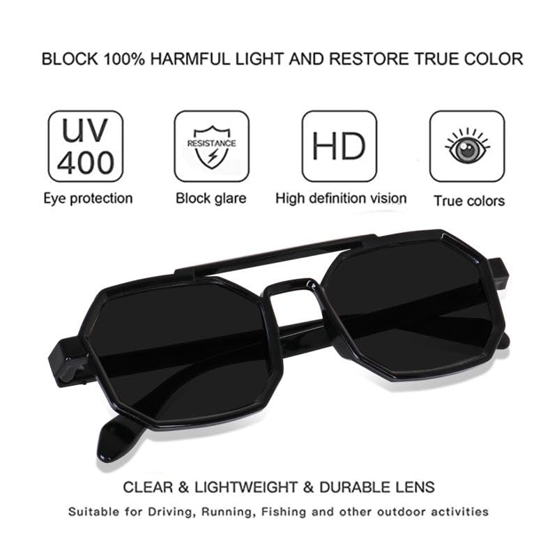Unique Hexagonal Design: The standout feature of these sunglasses is their striking hexagonal shapeUnique Hexagonal Design: The standout feature of these sunglasses is their striking hexagonal shape