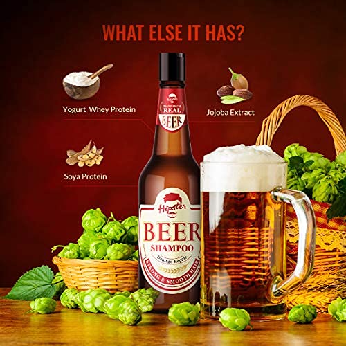 Why Hipster Beer Shampoo : It has a Yogurt whey protein , Soya Protein & Jojoba Extract. Also Ideal for gift for men.