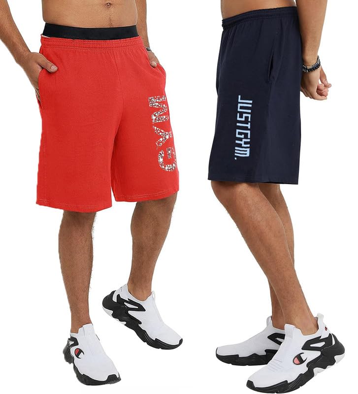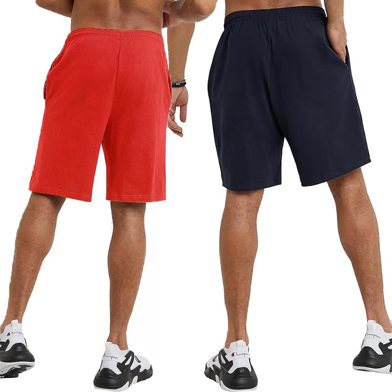 hotfits Men’s Casual Cotton All Season Regular Shorts, Workout Shorts, Elastic Waist Running Shorts with Pockets Pack of 2