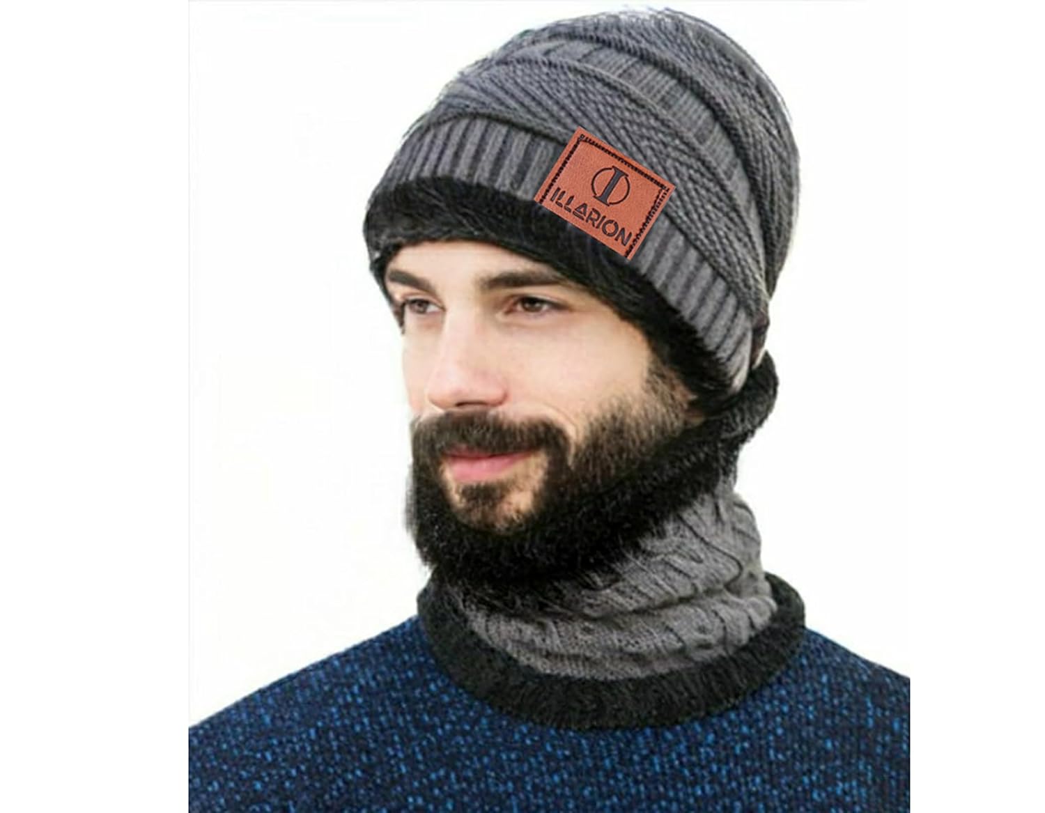 ILLARION Combo Winter caps Unisex Pack of 2 Beanie Caps Men and Women Warm Fleece Lined and Fur 2 Stylish Woolen Hat with 2 Neck Scarf