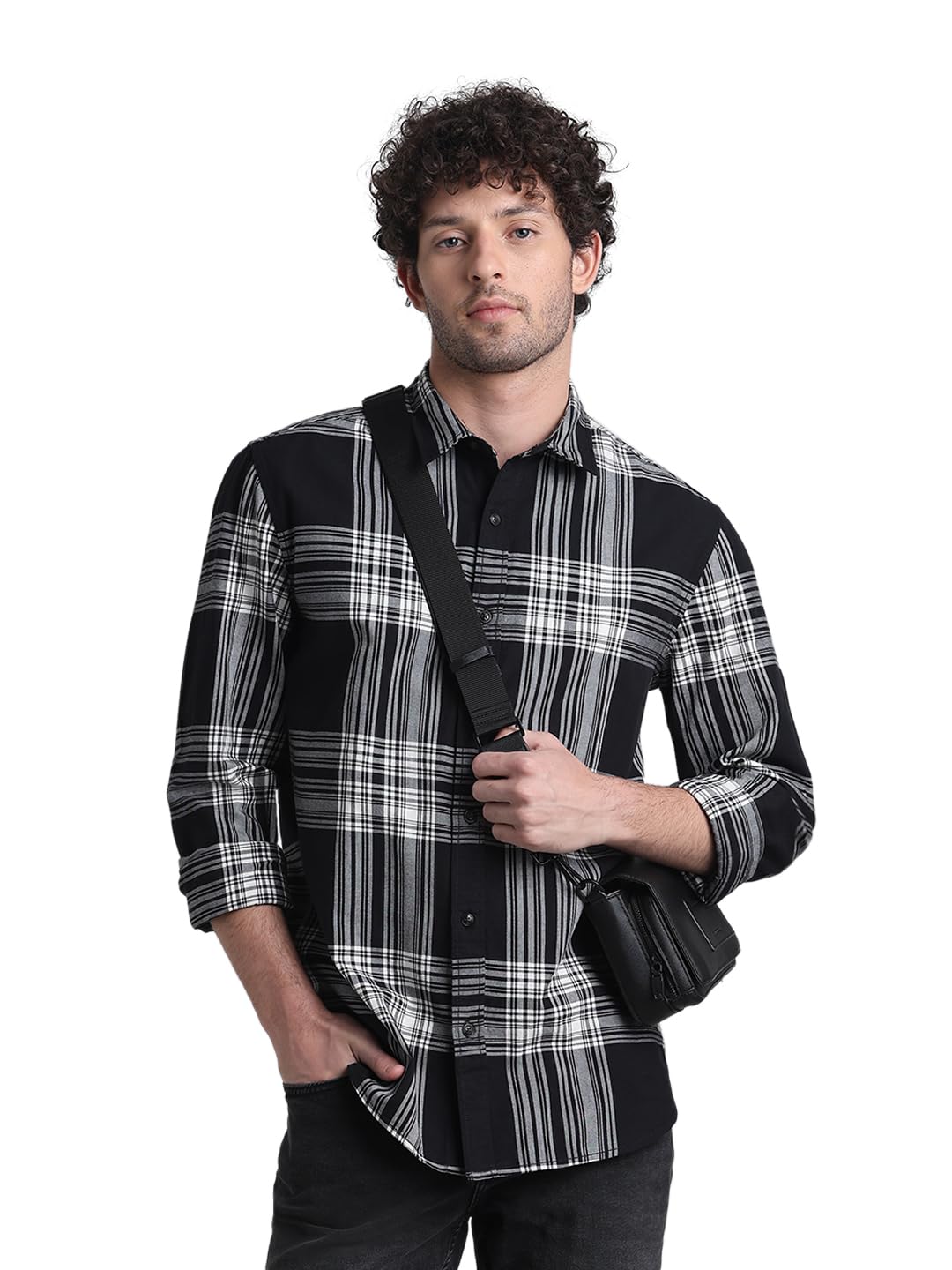 Jack & Jones Men’s Checked Slim Fit Spread-Collar Casual Shirt