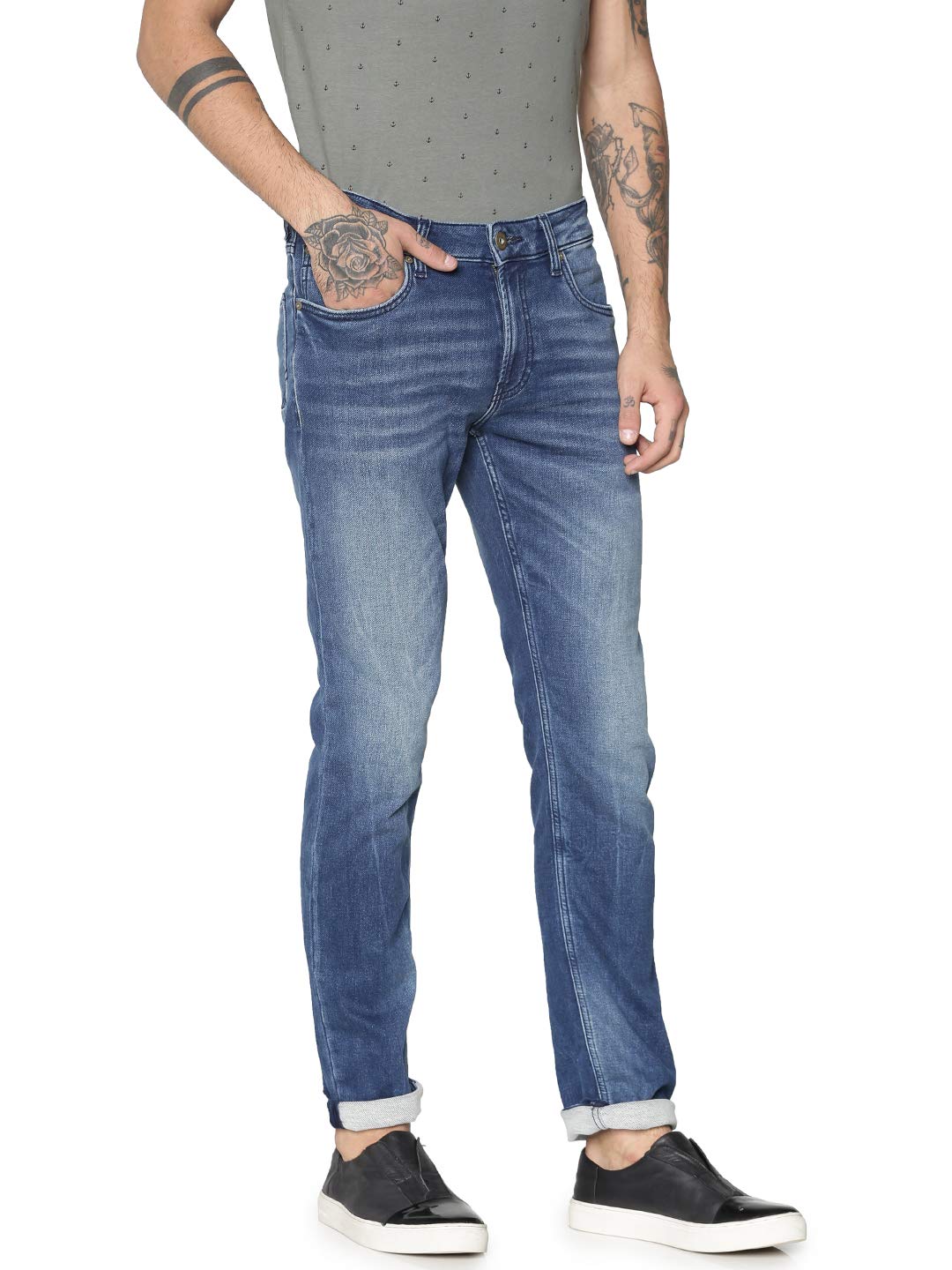 Jack & Jones Men Cotton Solid Blue Regular Fit Jeans