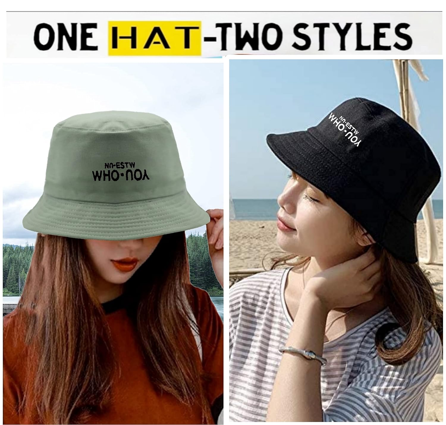 JAZAA Bucket Hat for Women Men Teens Reversible Summer Beach Sun Hat Packable Fisherman Cap for Travel Outdoor Hiking