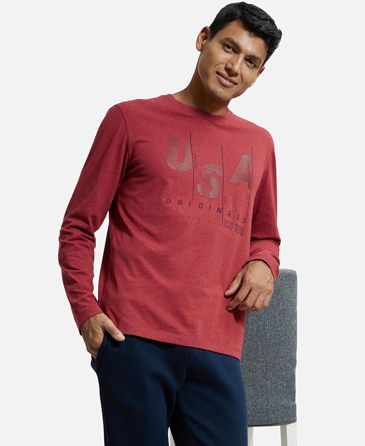 Jockey Us82 Men’s Super Combed Cotton Rich Solid Round Neck Full Sleeve Regular Fit T-Shirt_Red Melange_XL