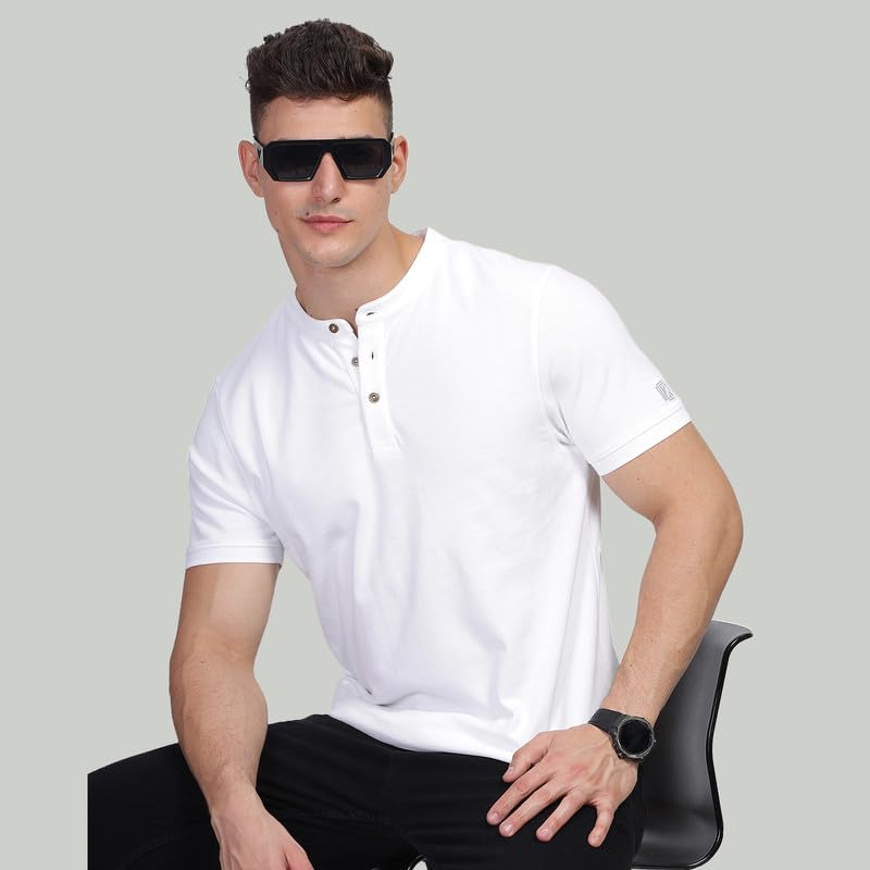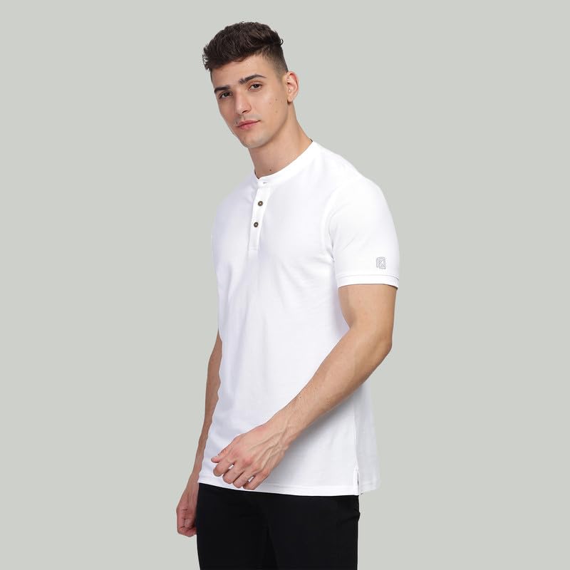 KARMIKH Men’s 100% Organic Cotton Rich Solid Mandarin Chinese Collar T-Shirt – Regular Fit, Short Sleeve Polo – Soft & Comfortable Breathable Fabric – Stylish Outerwear for Men and Boys