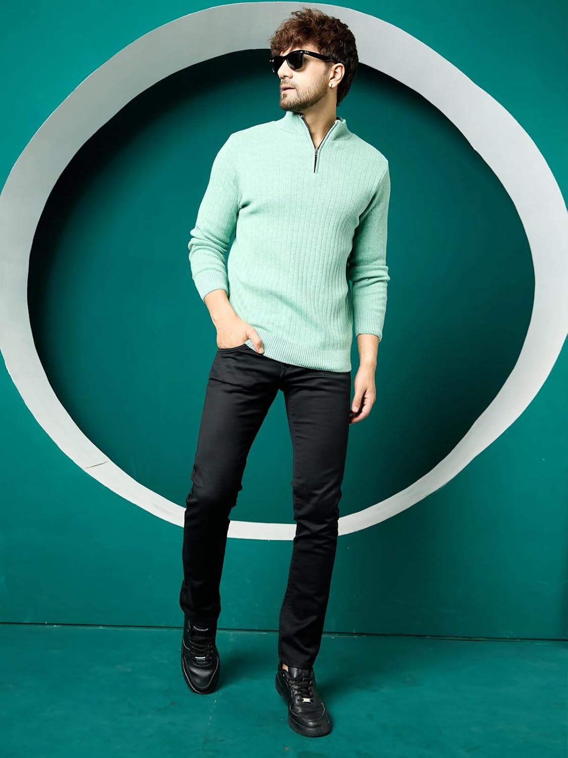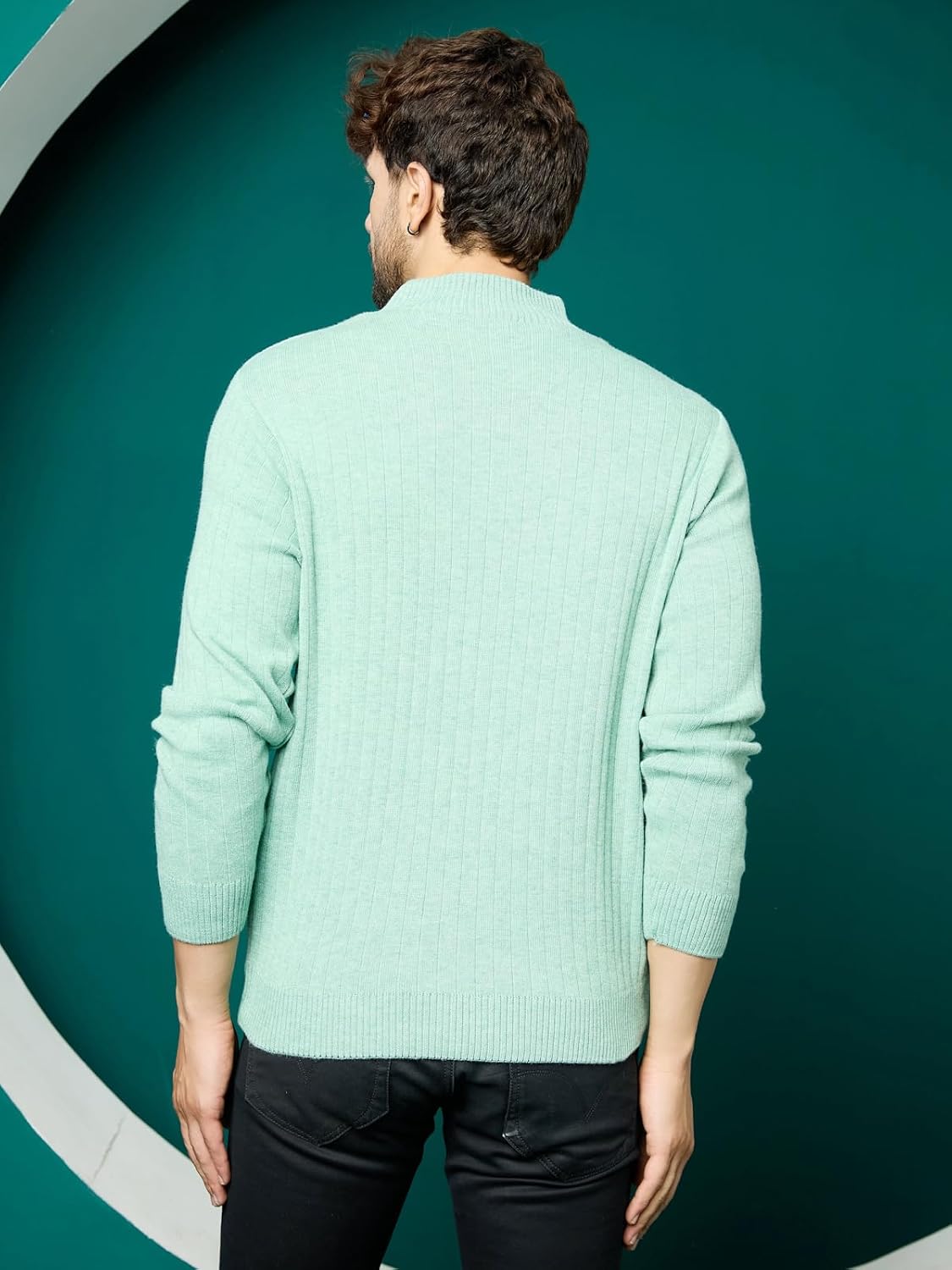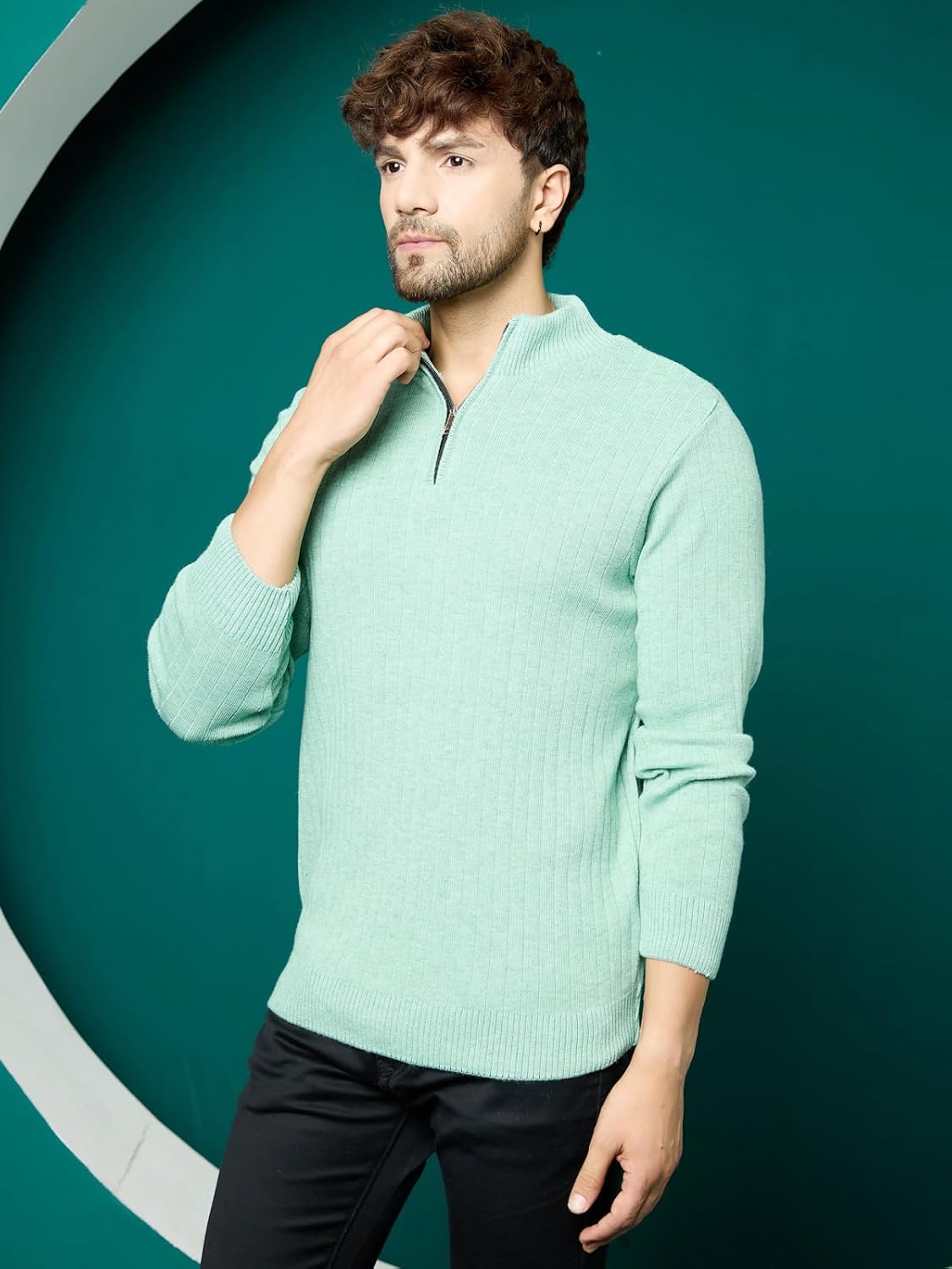 Kvetoo Men High Neck Zipper Full Sleeve Woolen Winter Sweater