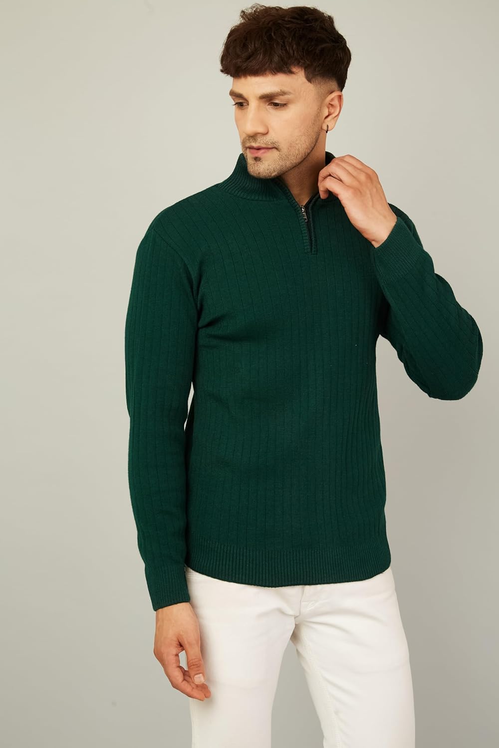 Kvetoo Men High Neck Zipper Full Sleeve Woolen Winter Sweater