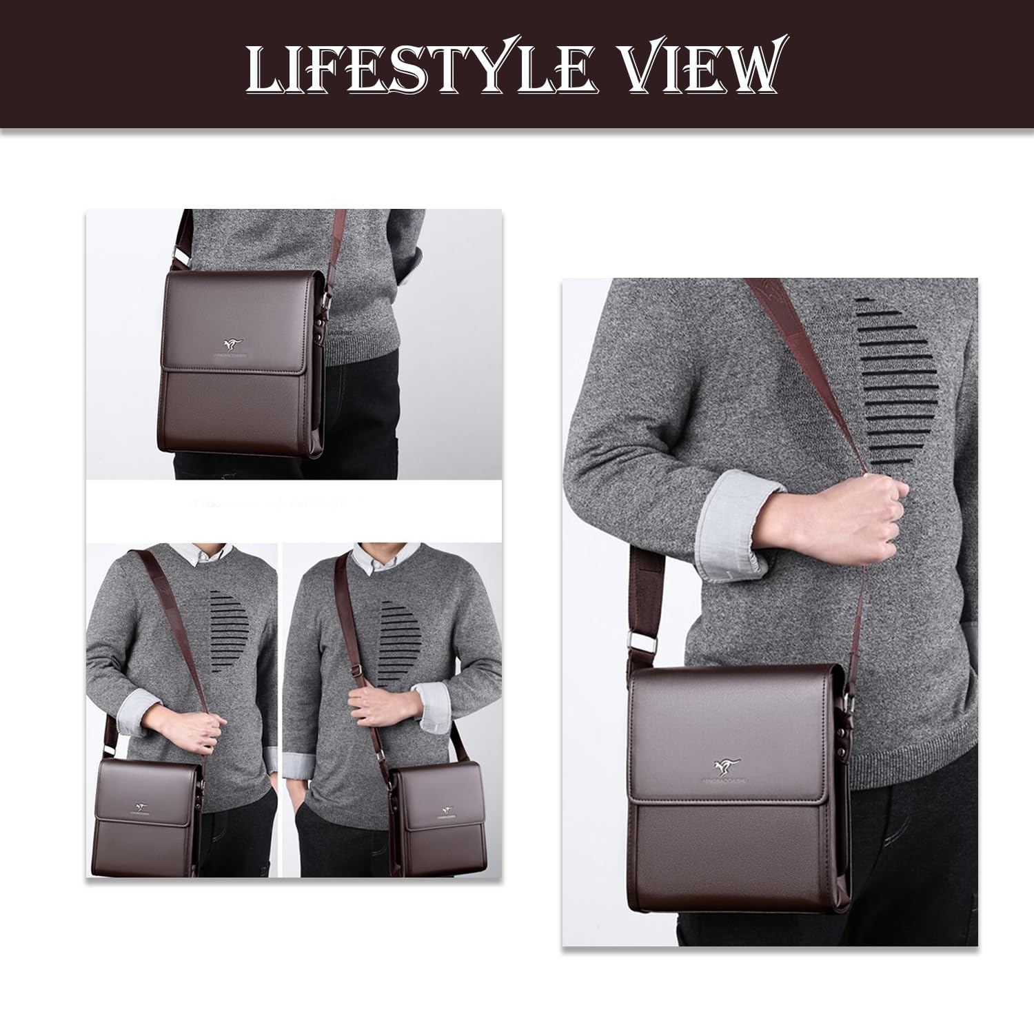 LACOPINE Leather Retro Men’s Shoulder Messenger Sling Bag,Brown