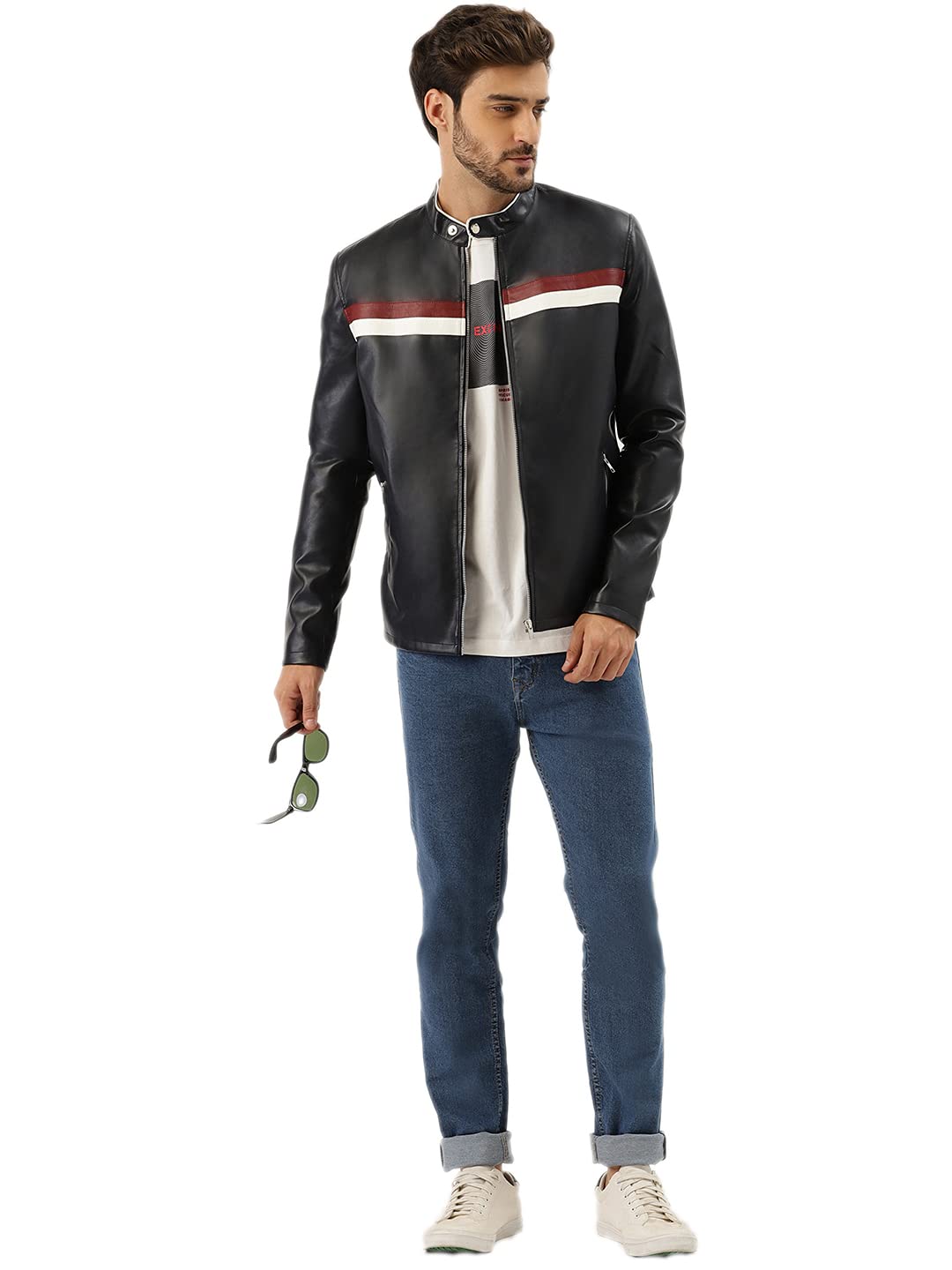 Leather Retail® Black Color Spanish Design Faux Leather Biker Jacket for Man