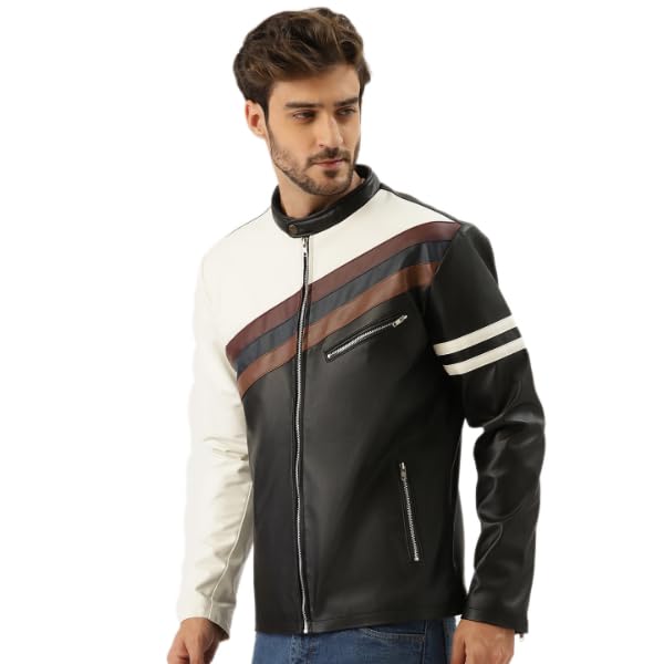 Navigate the urban terrain in style with our urban terrain textured faux leather regular jacket. This modern design features a fitted silhouette and a textured faux leather construction, perfect for the fashion-forward man. The textured finish adds a touch of ruggedness to the jacket, making it perfect for dressing up or dressing down. The high-quality faux leather is soft to the touch and features a subtle sheen, giving it a luxurious feel.