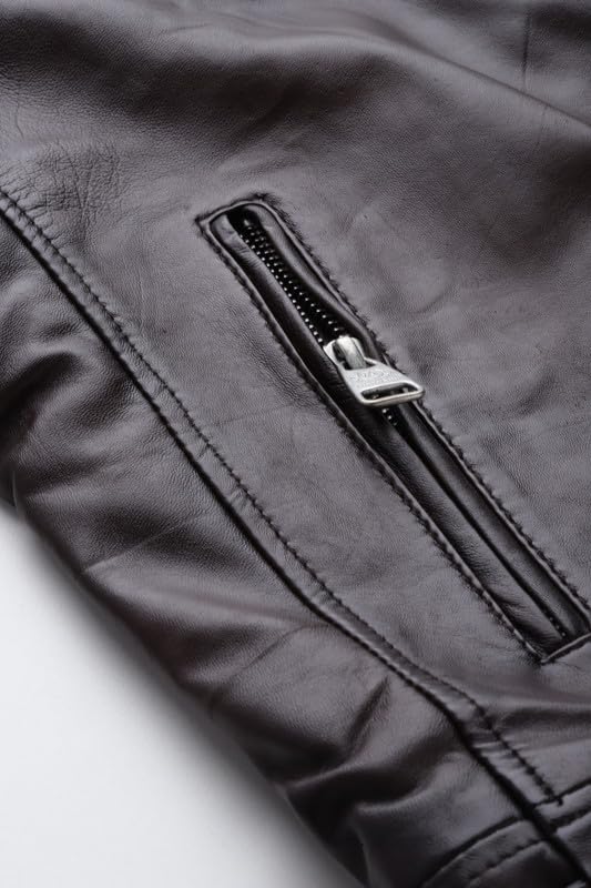 With the right jacket, you can make any outfit look great. The jackets are available in a range of stylish colors, with dark and light variants. Each jacket is fitted and lined with soft polyester. Wrap yourself in this Brown leather jacket for a rugged yet stylish look. It goes with just about anything. Featuring a zip closure and a snap Zip cuff that keeps out the cold, the two chest pockets with practical zipped opening provide easy access to your phone or any other essentials.