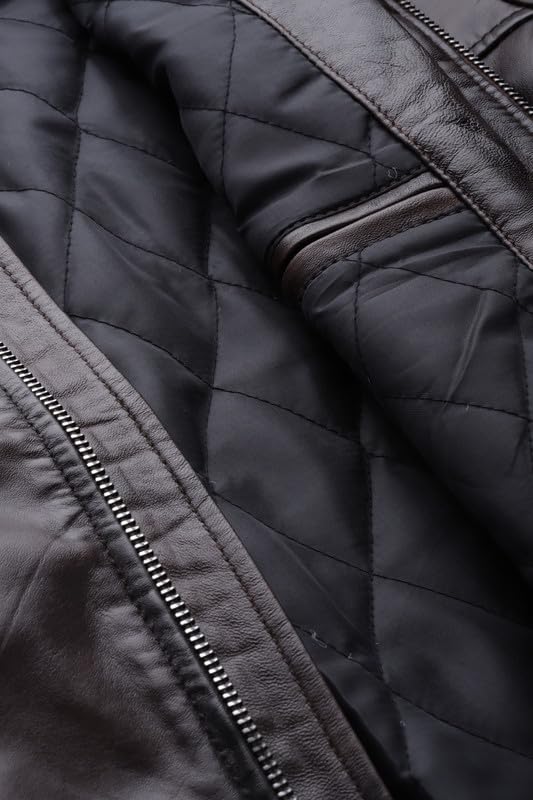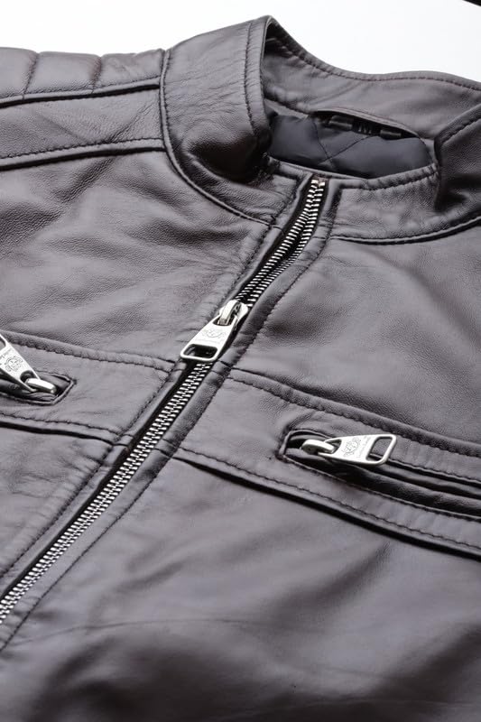 With the right jacket, you can make any outfit look great. The jackets are available in a range of stylish colors, with dark and light variants. Each jacket is fitted and lined with soft polyester. Wrap yourself in this Brown leather jacket for a rugged yet stylish look. It goes with just about anything. Featuring a zip closure and a snap Zip cuff that keeps out the cold, the two chest pockets with practical zipped opening provide easy access to your phone or any other essentials.