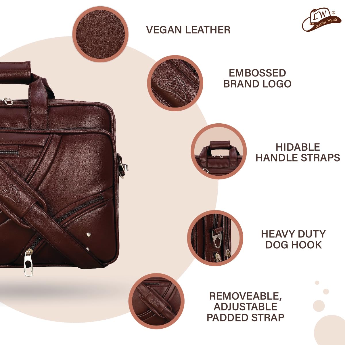Leather World Vegan Leather 15.6 Inch Laptop Office Briefcase Messenger Bag Satchel for Men and Women, with Adjustable Strap and Expandable Bottom