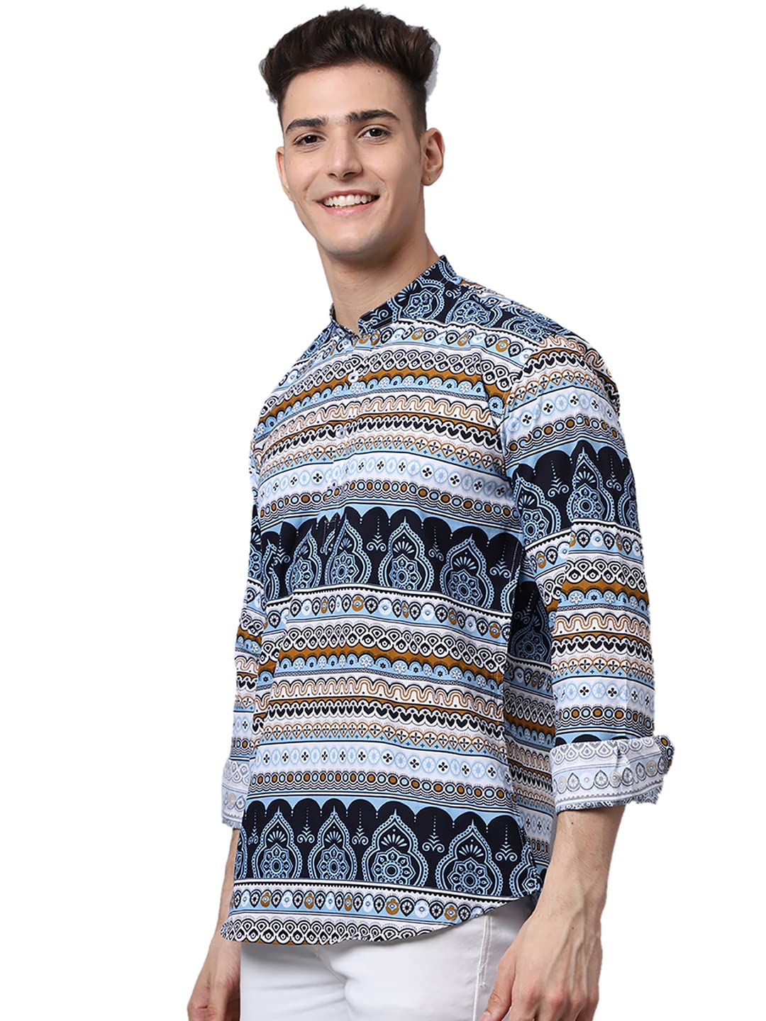 SPN-BFC Cotton Printed Short Kurta for Men casual stylish full sleeves shirt for office party