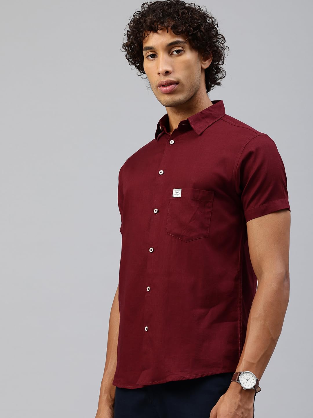 Elevate your casual wardrobe with this Slim Fit Pure Cotton Solid Half Sleeve Shirt for men. Designed to offer a modern, sleek silhouette, this shirt combines comfort with style, making it an essential addition to any wardrobe.