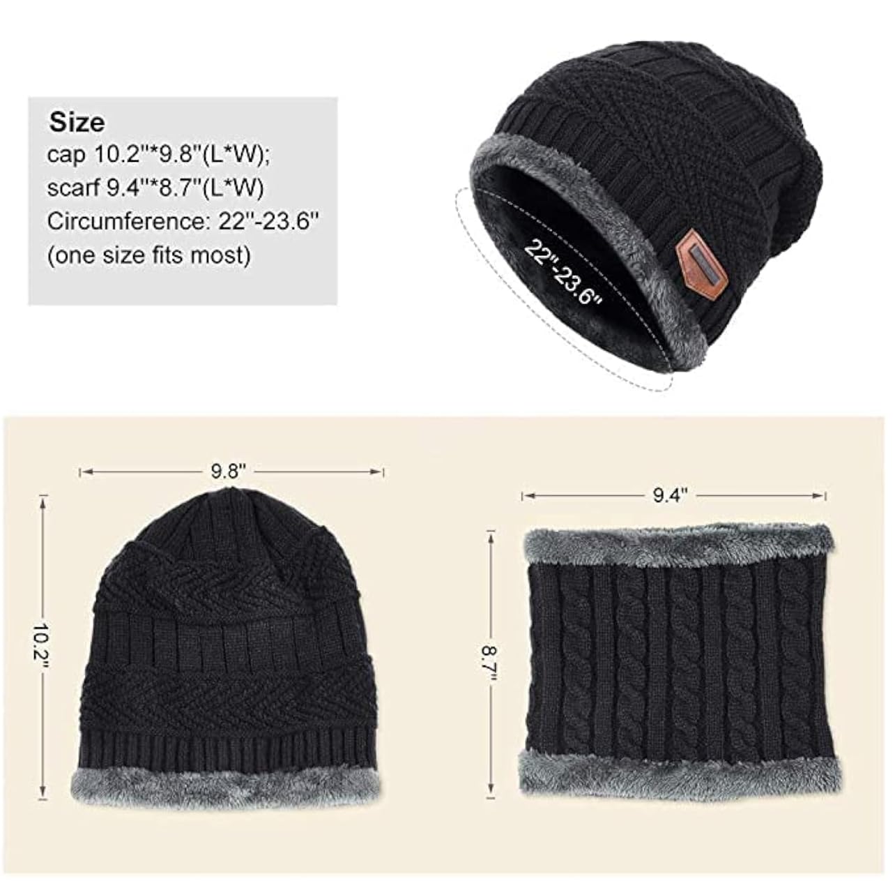 MAKE A WISH Wool Beanie Cap & Muffler for Mens & Women – Winter Cap for Men – Men’s Woolen Cap with Neck Muffler – Winter Muffler for Women – Soft Woolen Muffler & Cap for Men & Women Black